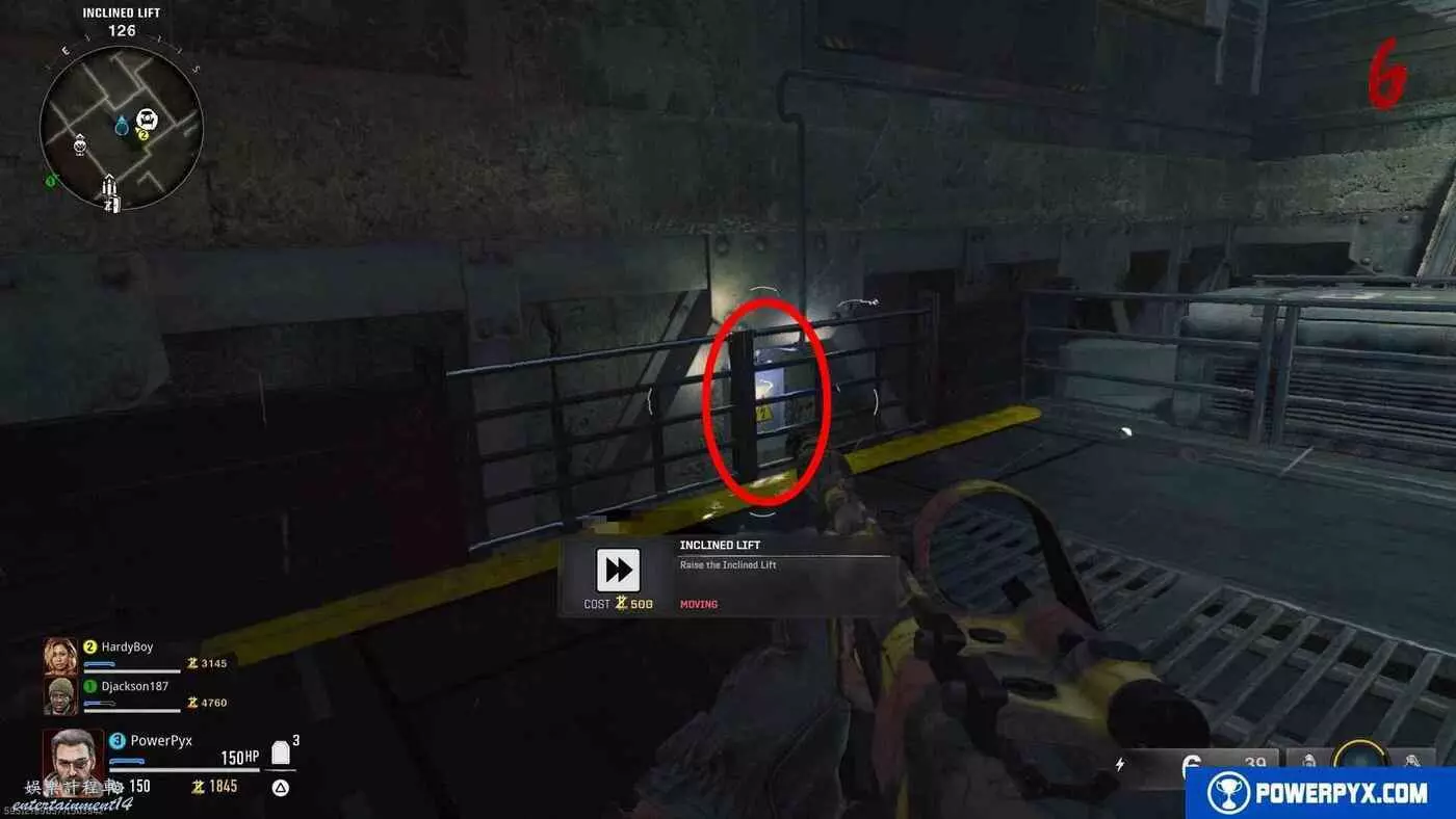 然後站在強化機所在位置的電梯上,啟動電梯。在乘坐電梯期間,需要用帶有致命電流屬性的武器按照特定順序來迅速射擊2個電箱,如果失敗可以再次乘坐電梯重試。乘坐電梯之後還需要再次射擊3個電箱。