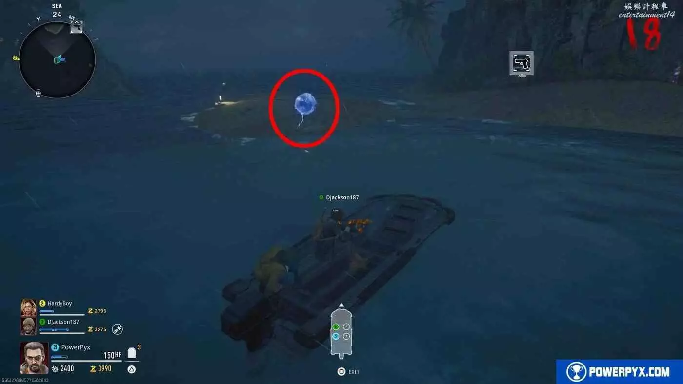 【奇跡武器部件2位置】根據藍球飛走的方向乘船追上去,找到藍球所在的下一個島,它會變成綠色,在船上很容易就能看見。重複同樣的步驟,與球體互動把多相位共振器放在下方,清掉喪屍,拾取2個綠色小球並放入大綠球,然後球體會繼續飛到第三個島上,拾取多相位共振器。