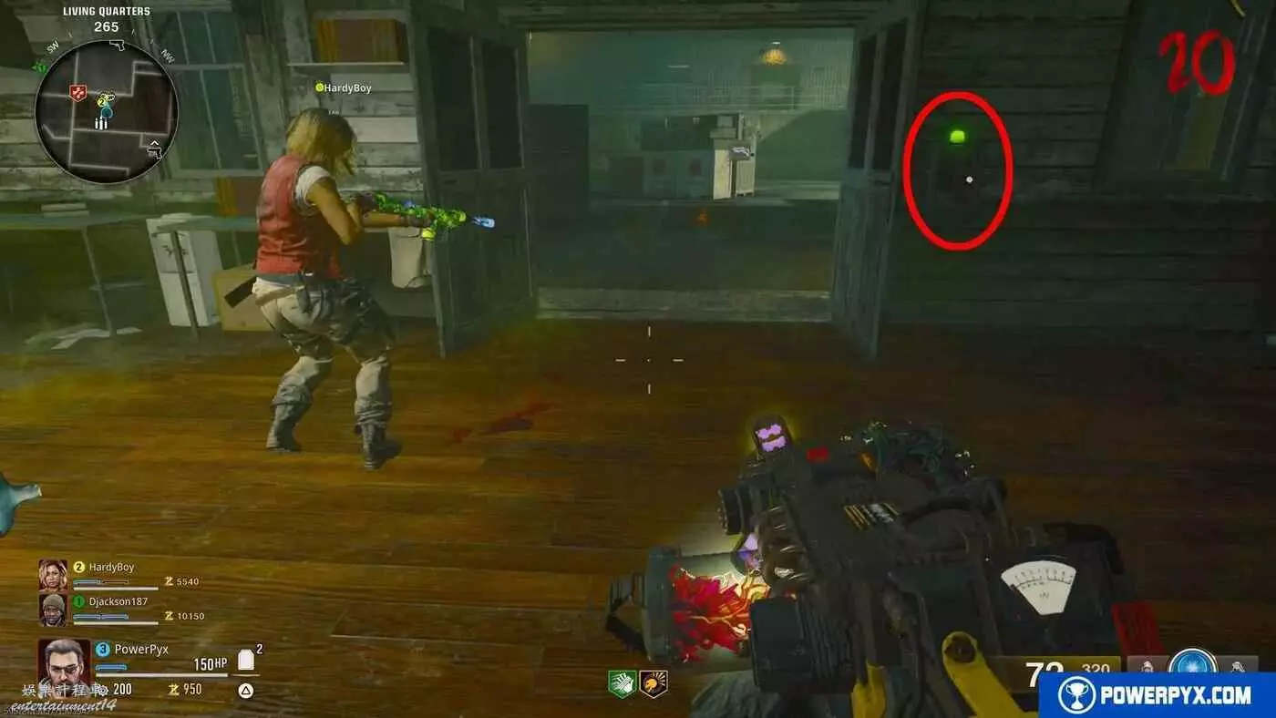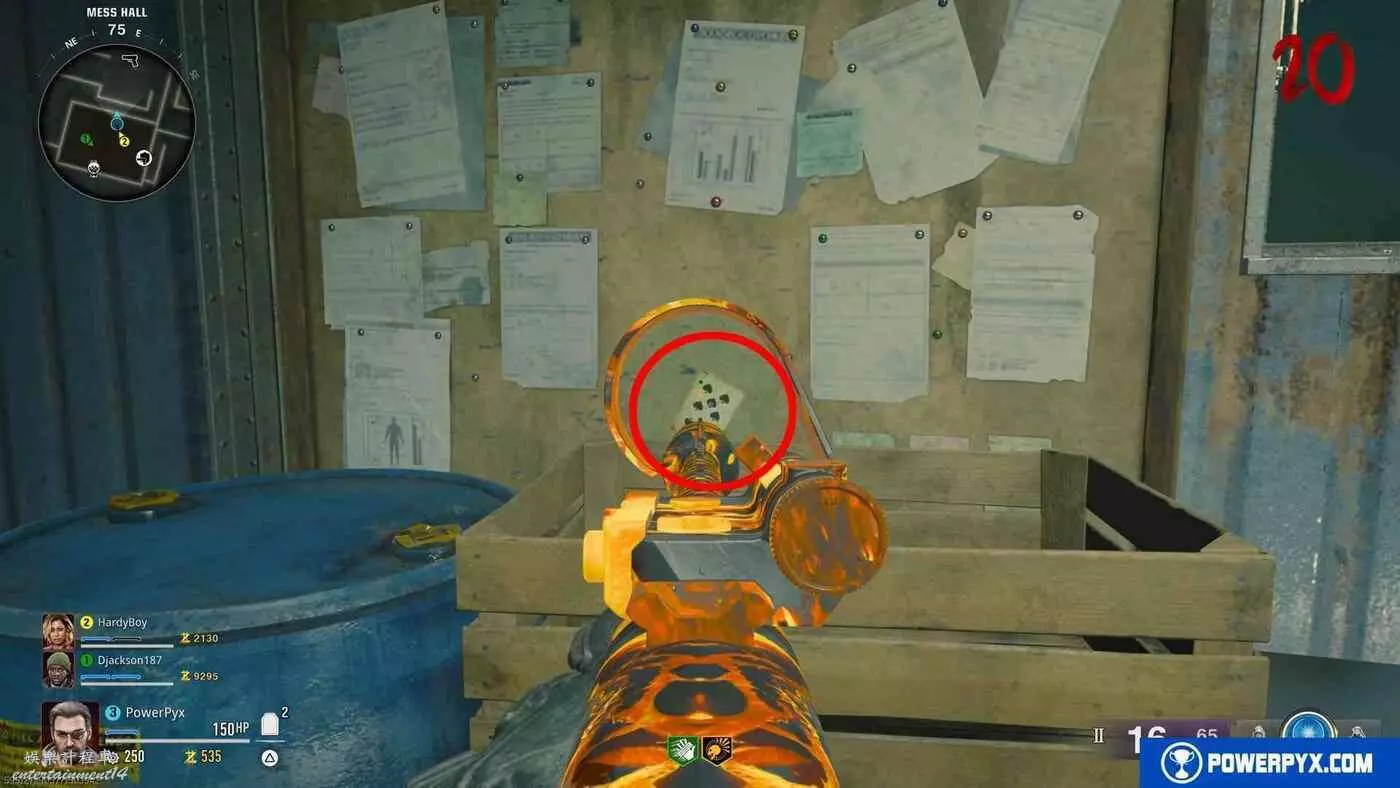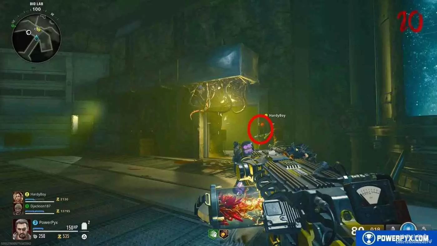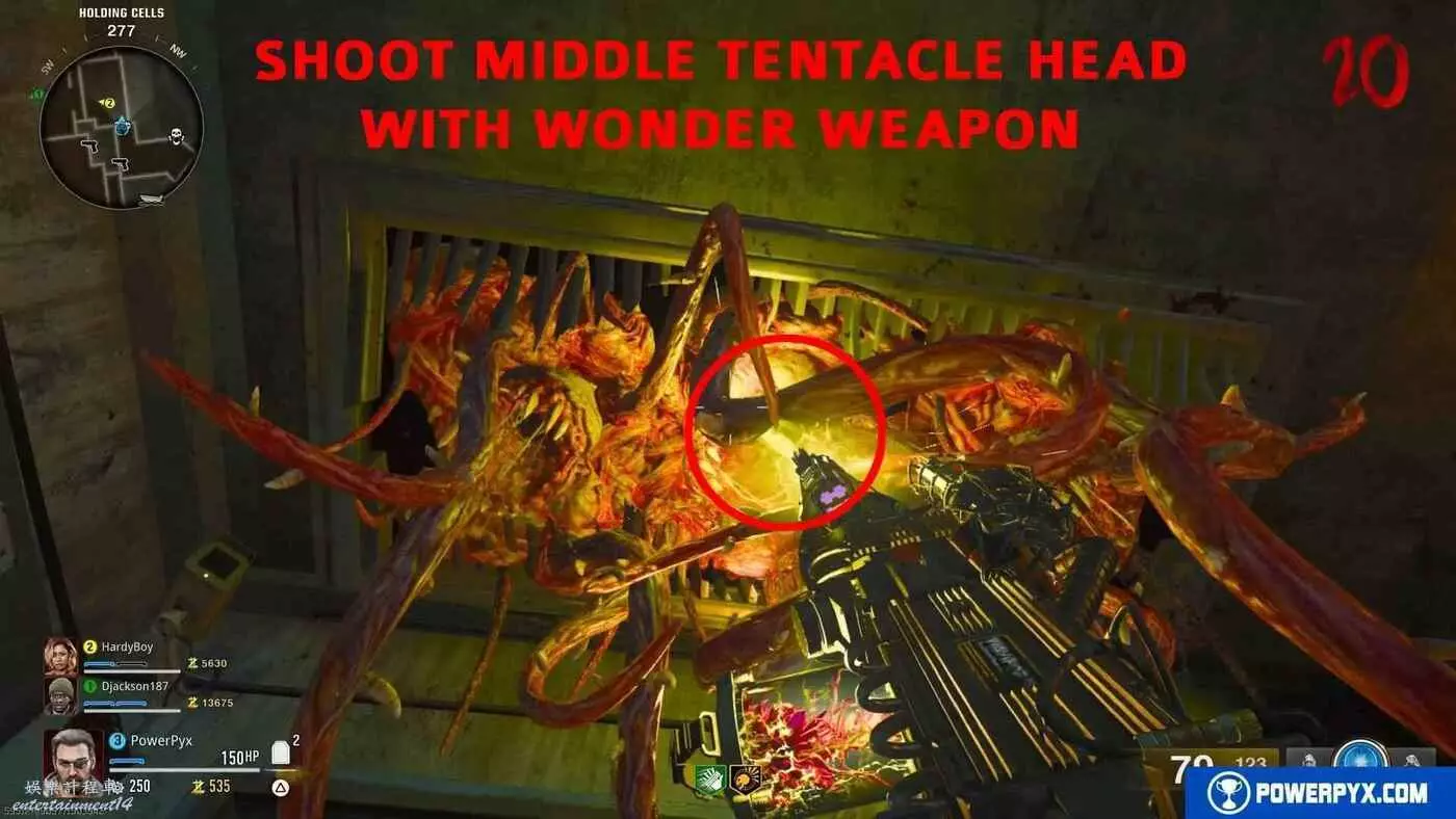 在地圖上分佈著觸手陷阱,每個花費750點數,啟動這些陷阱,用奇跡武器射擊上方觸手大概一秒左右,其中一個陷阱會掉落【硬碟】,有硬碟的陷阱下方會出現一張帶血的明信片,但明信片是隨機刷新的,建議射擊所有觸手陷阱直到掉落硬碟為止。
