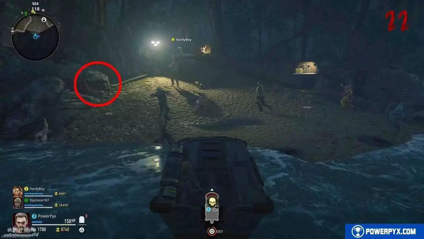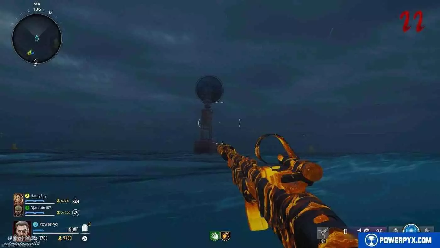 【奇跡武器部件2位置】根據藍球飛走的方向乘船追上去,找到藍球所在的下一個島,它會變成綠色,在船上很容易就能看見。重複同樣的步驟,與球體互動把多相位共振器放在下方,清掉喪屍,拾取2個綠色小球並放入大綠球,然後球體會繼續飛到第三個島上,拾取多相位共振器。