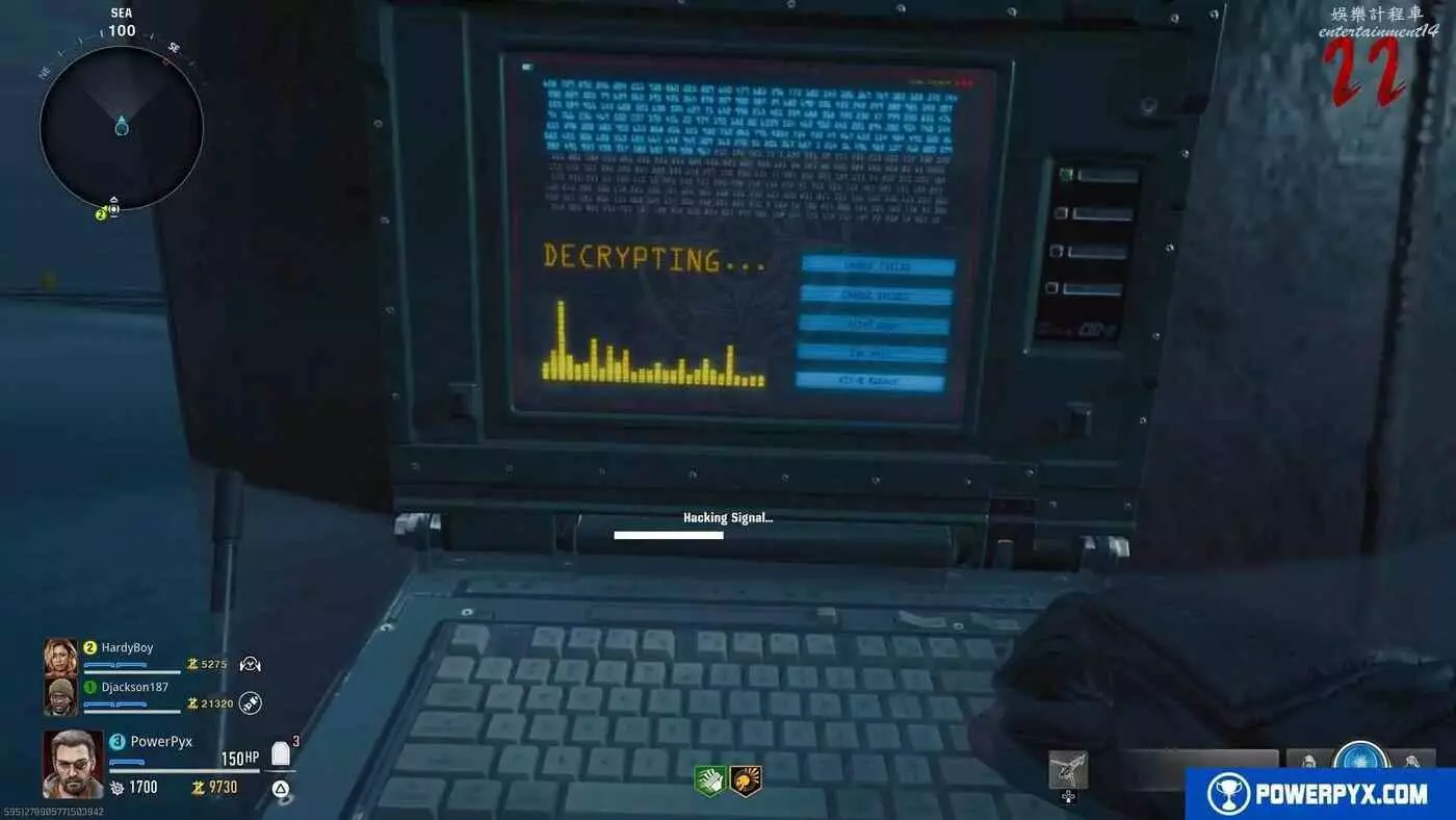 在附近海面上有3個浮標,按住□鍵/X鍵即可使用破解器黑入浮標,成功黑入第一個浮標後,開始2分鐘倒計時,需要在規定時間內破解另外兩個浮標。
