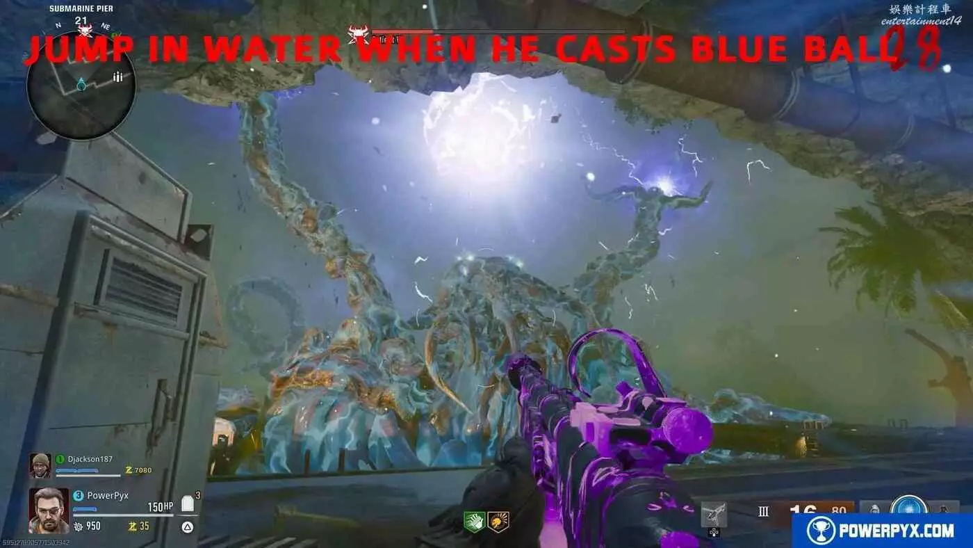 BOSS的出手上會出現弱點提示,優先射擊這些弱點。除此之外BOSS還會時不時揮動觸手,要注意躲避,可以跳入水中躲避攻擊,或者在周圍的平台間來回移動。