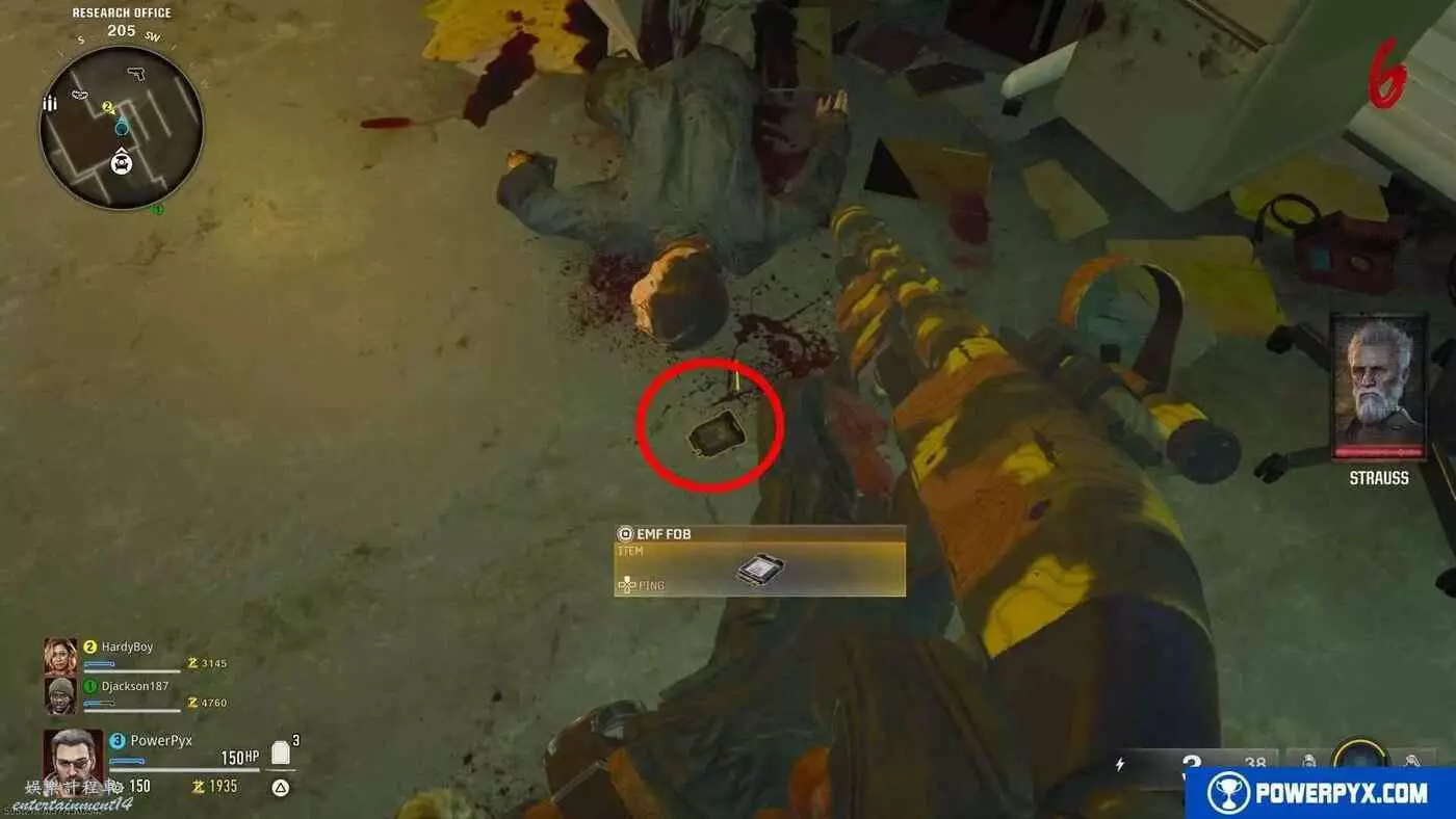進入奇跡武器工作台所在房間,地上有一隻喪屍,擊殺喪屍並拾取它掉落的金色物品【電磁場智能鑰匙】。