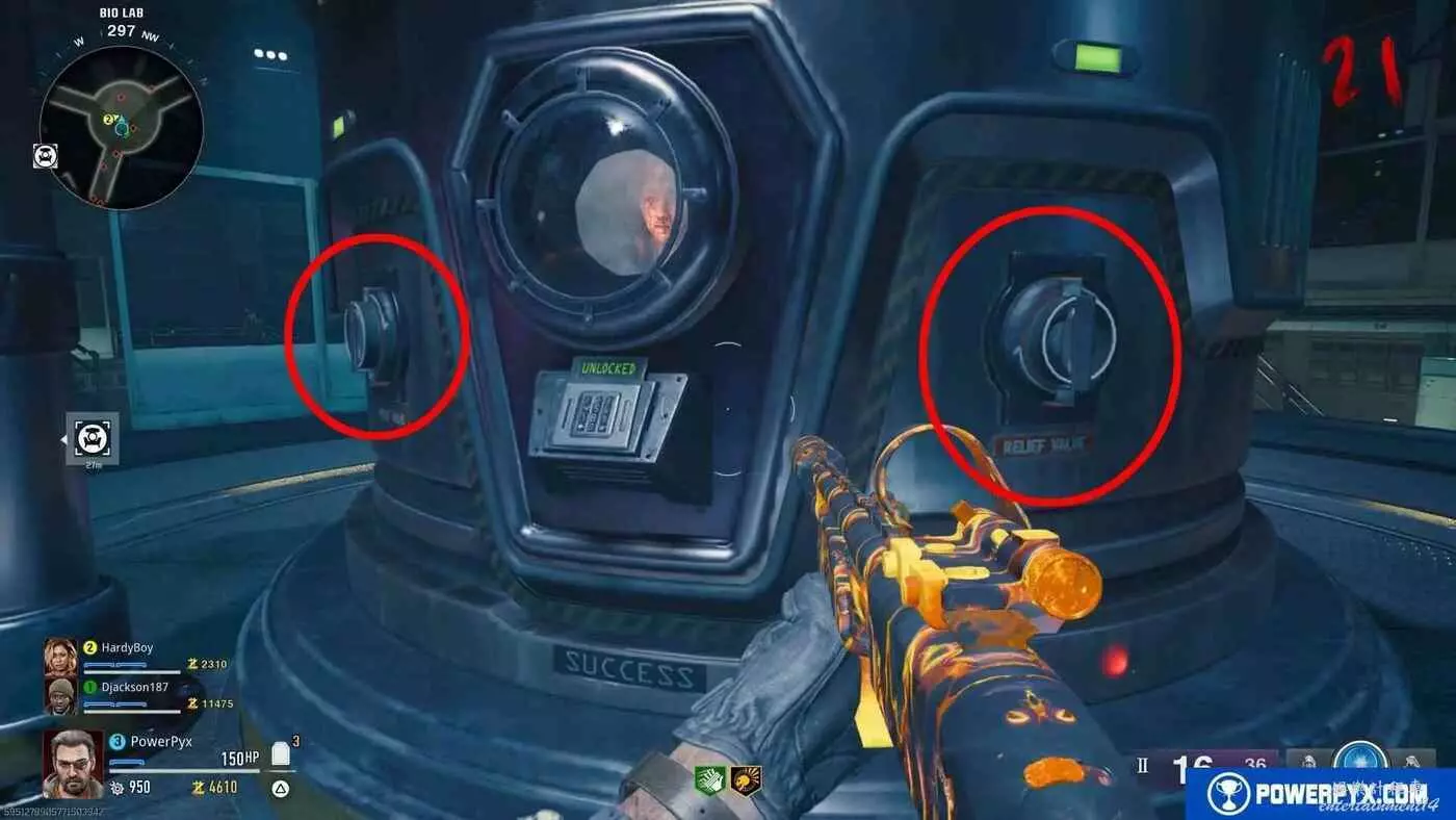 在密封艙的密碼盤旁邊一共有4個閥門,在關卡內的所有玩家必須同時按住□鍵/X鍵轉動閥門。例如當前關卡內有3名玩家,則必須同時打開3個閥門(每個玩家開一個)。