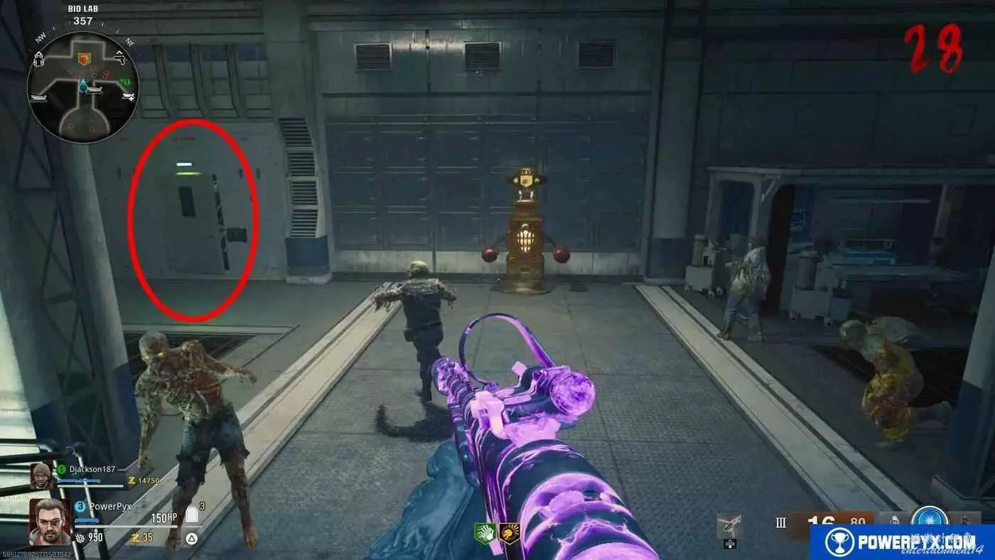 返回初始區域安保室,與玻璃後的博士交談付給他5000貨幣讓他解開方程,雖然很容易但會浪費點數,這些點數最好用來為最終BOSS做準備,但如果是單人遊玩,沒有隊友幫忙分擔清喪屍的壓力的話,此方法會簡單很多。