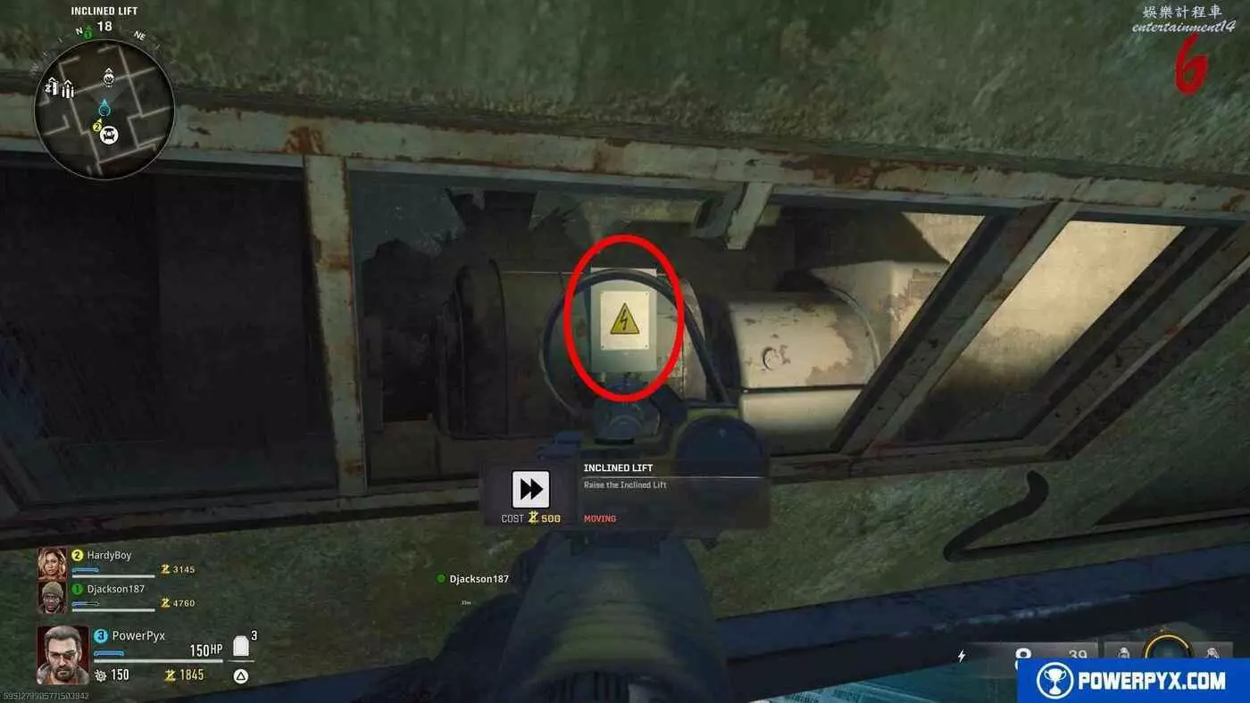 首先需要打開電源,跟隨橙色的主要目標開啟3台發電機並抵禦喪屍的攻擊,開啟第三個發電機後,在同一房間內跳入水中,按下按鈕升起強化機所在平台。