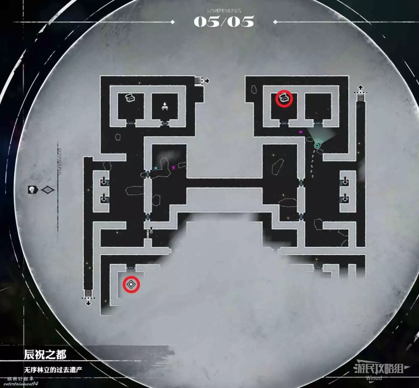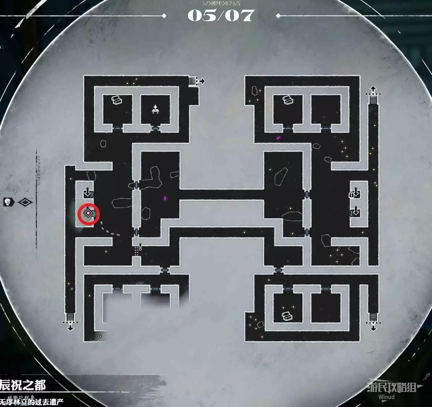 地圖左下角的寶箱房間對應【無序林立的過去遺產】地圖左下角樓梯口。