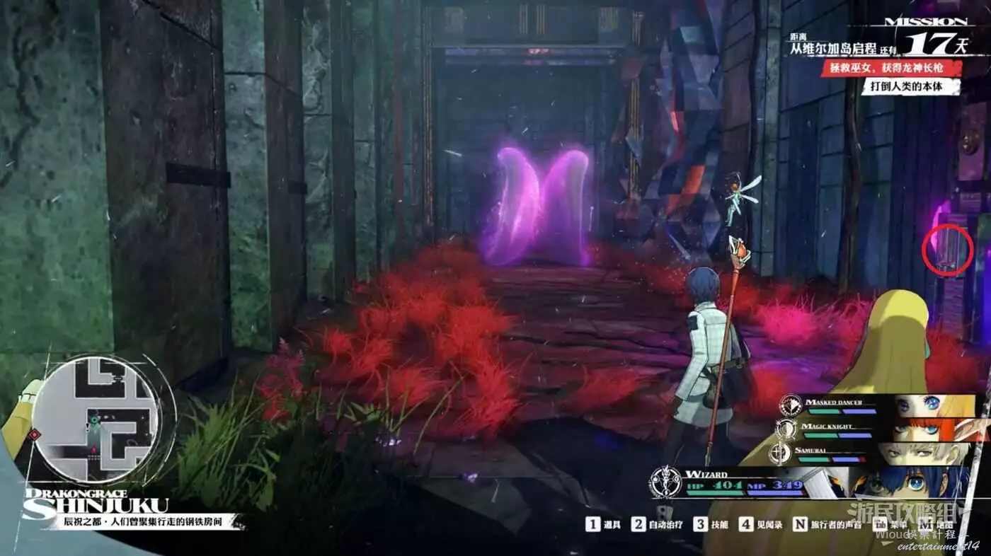 通過與此區域的三個機關互動關閉三扇門,此時能夠行走的區域只有一條道,直接跟到死路與其戰鬥。