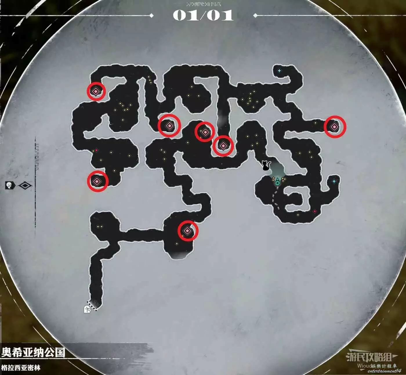 再從【歎息之墓】走到地圖右邊的【格拉西亞密林】,進入密林就會顯示出七個龍棘草,前往特定位置將這七個龍棘草的果實全部收集就行,收集完所有果實會觸發這個迷宮的BOSS戰,在收集最後一個果實前建議將地圖右側的兩個藍點道具拿了。