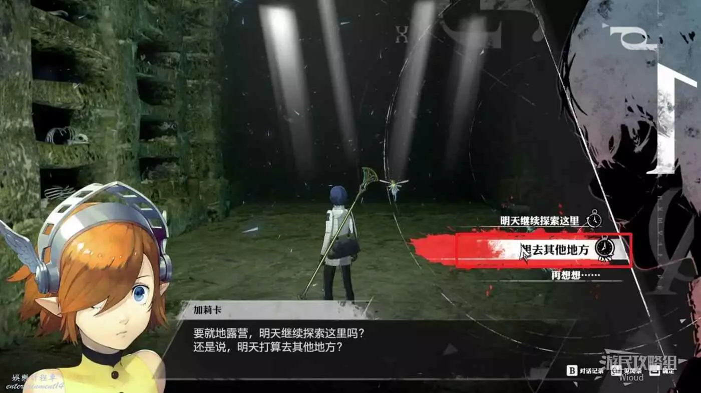 戰鬥結束即可完成支線任務【尋找夢幻酒器】與賞金委託【附在酒杯上的歎息亡靈】,離開迷宮選擇【在這裡露營】,然後選擇【想去其他地方】。