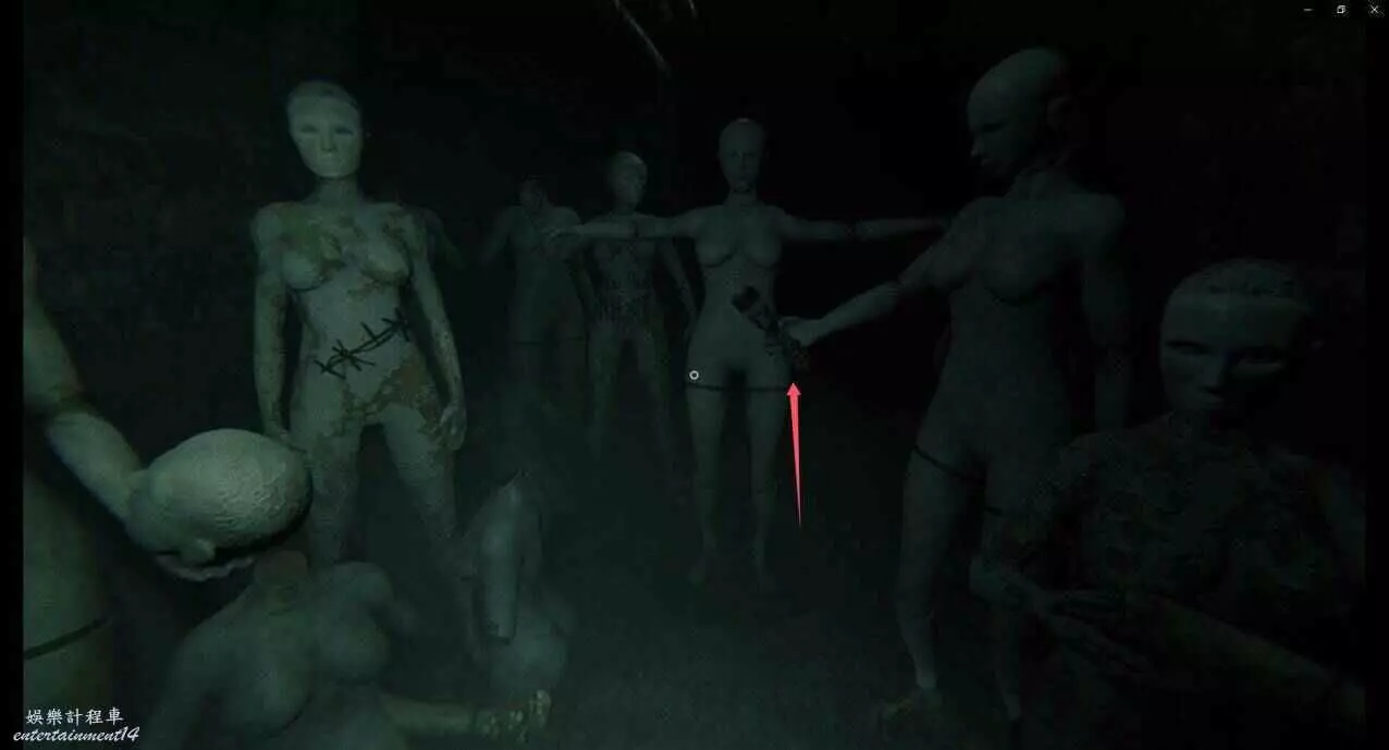 出門後向右拐,然後左拐,來到一堆人體模型的這裡,去他們的對面開門來到第三個房間
