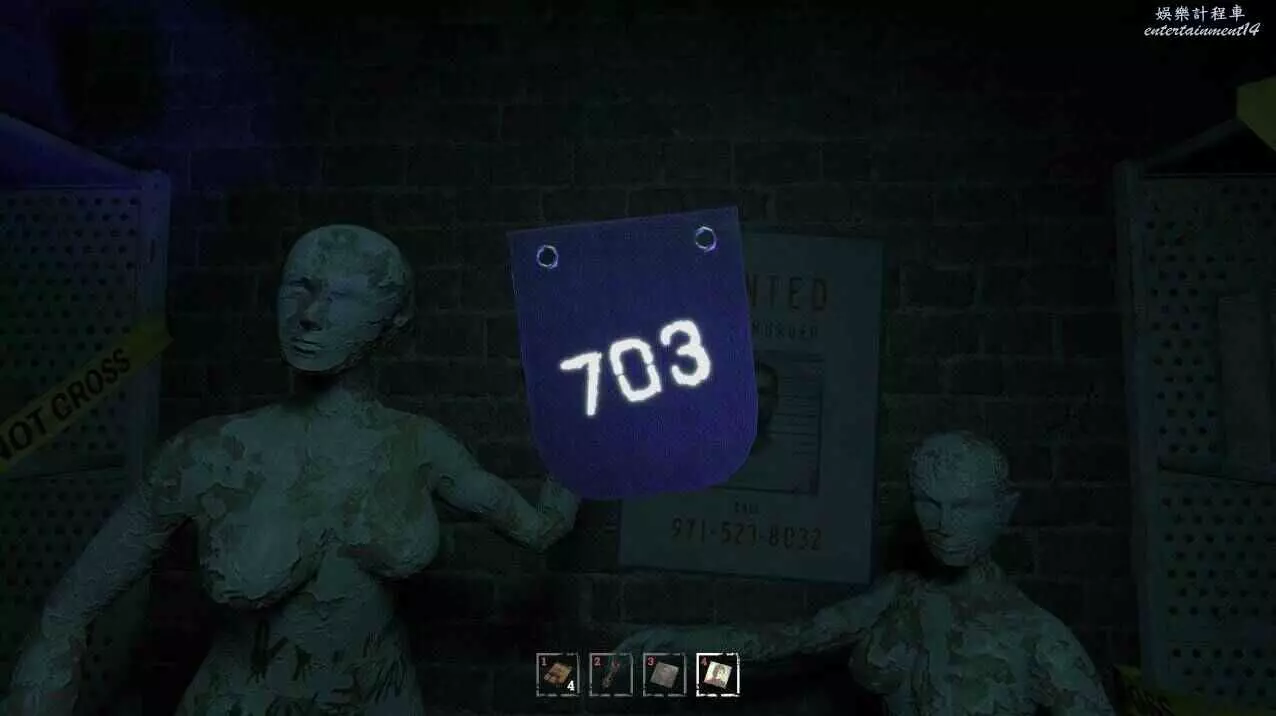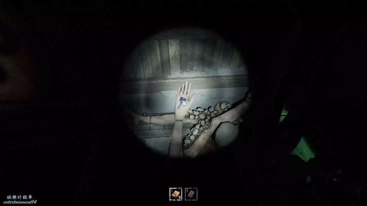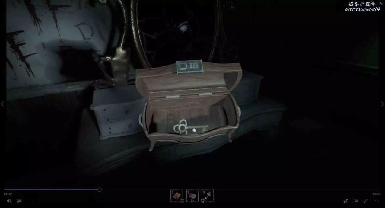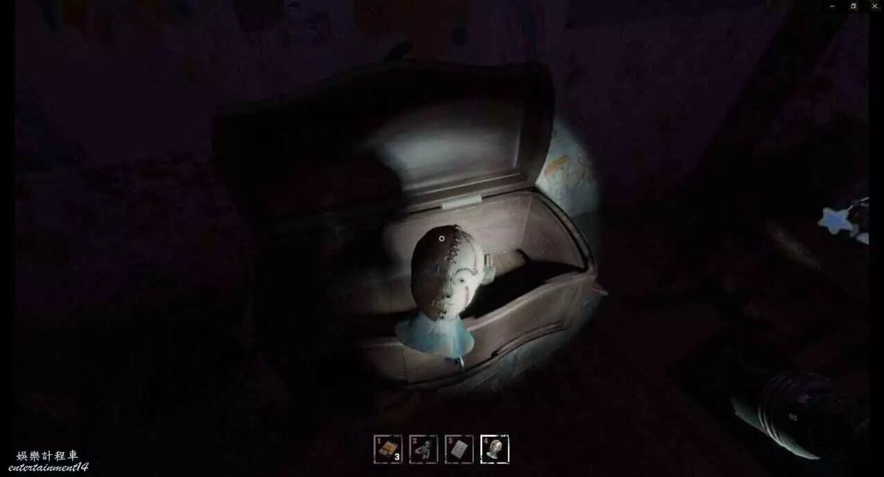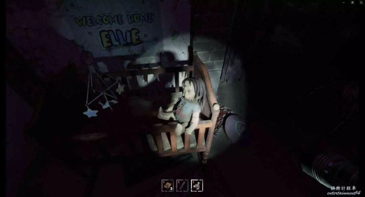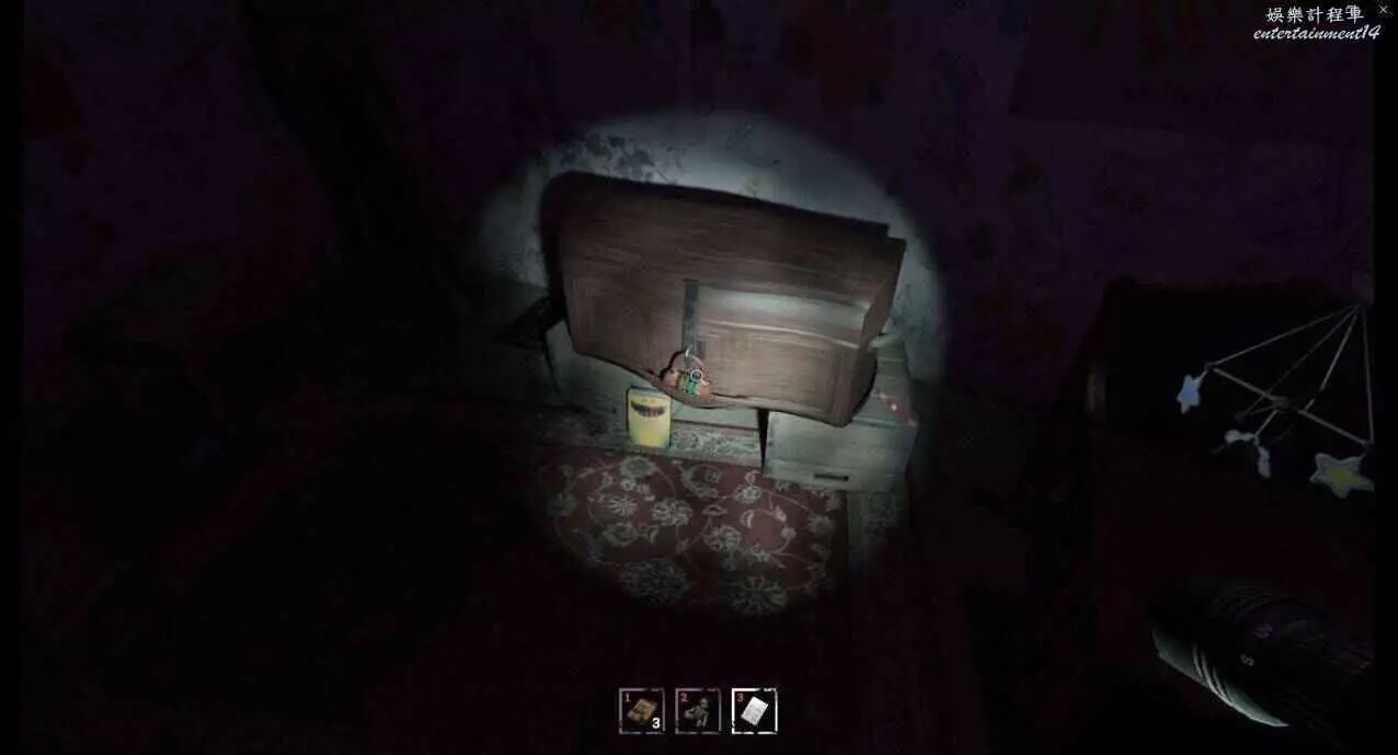 進入後先從娃娃的模型裡拿取鑰匙,然後打開棺材用紫外線照射查看第一個數字,再去點擊電腦,獲取第二個數位,第三個數位在小孩房間的牆上,之後輸入密碼即可