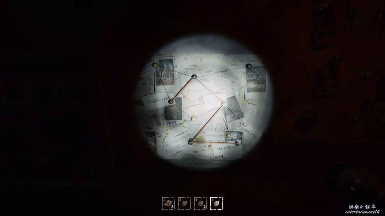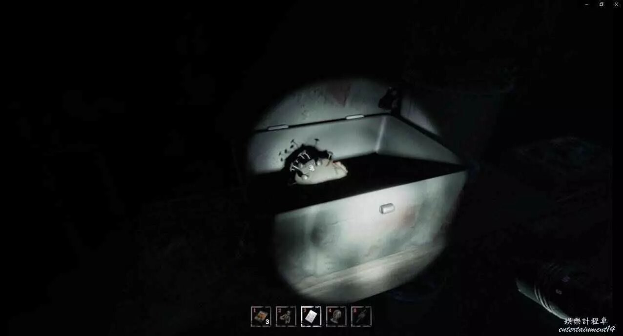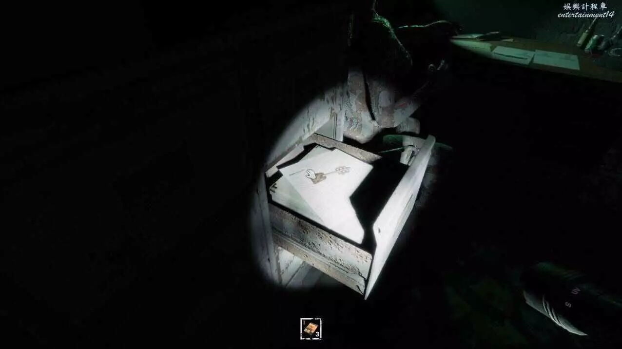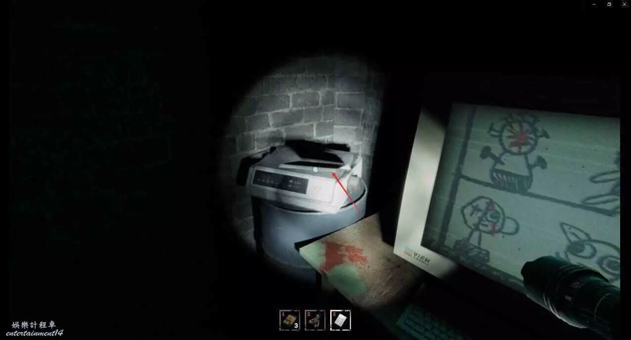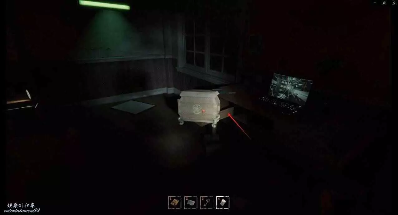 進入後先從娃娃的模型裡拿取鑰匙,然後打開棺材用紫外線照射查看第一個數字,再去點擊電腦,獲取第二個數位,第三個數位在小孩房間的牆上,之後輸入密碼即可