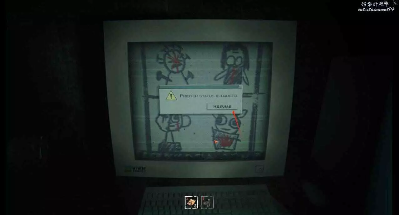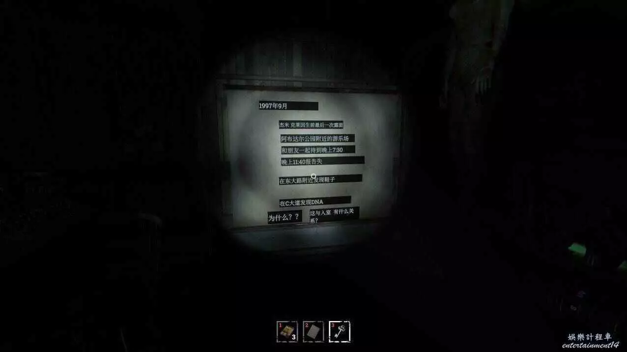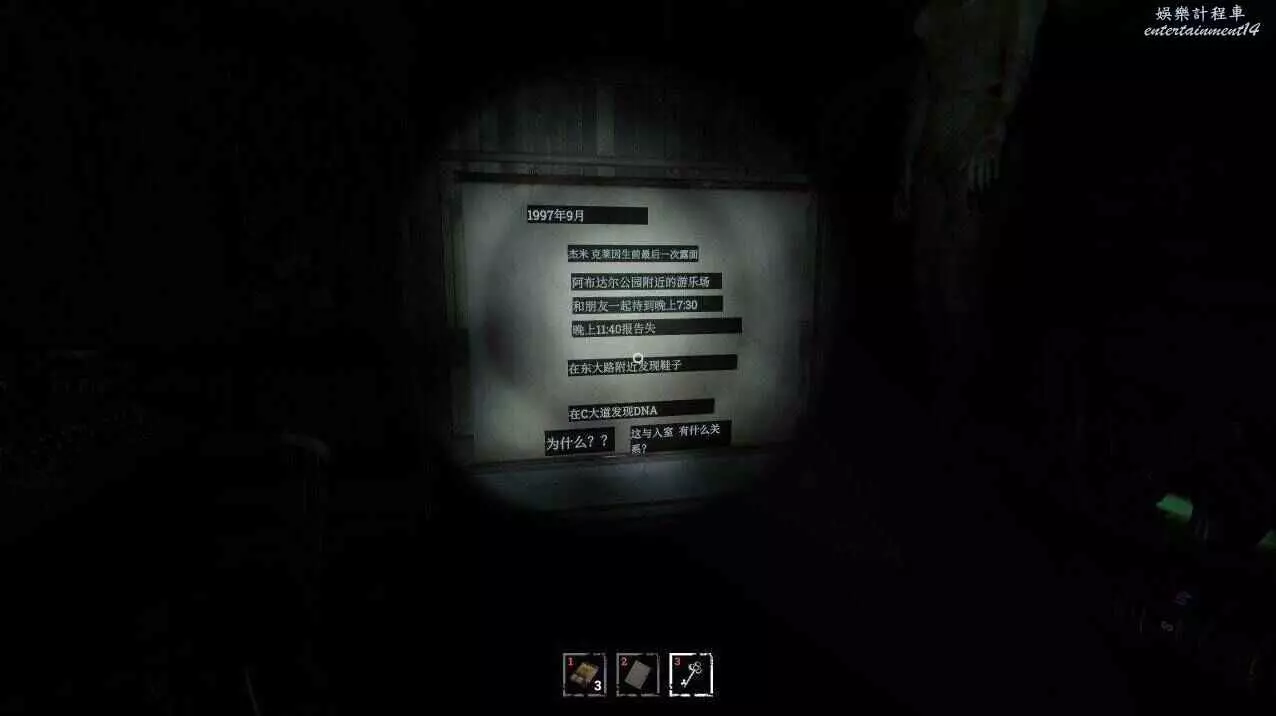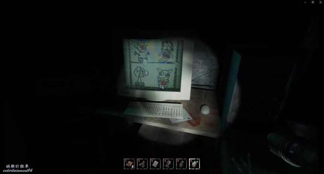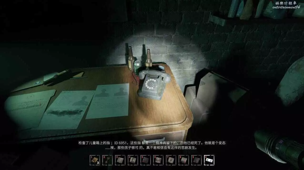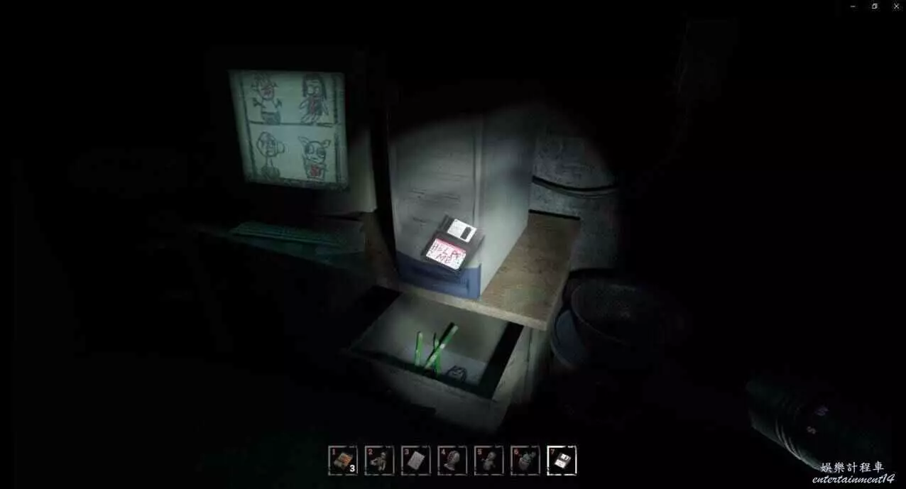 進入後先從娃娃的模型裡拿取鑰匙,然後打開棺材用紫外線照射查看第一個數字,再去點擊電腦,獲取第二個數位,第三個數位在小孩房間的牆上,之後輸入密碼即可