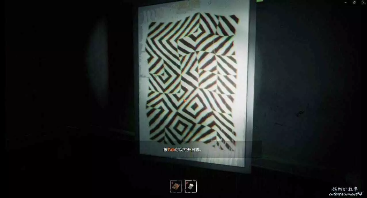 手電筒只有紫外線的功能,第一個房間的門需要我們輸入一個三位元數的密碼中間的數位可以通過向左邊照明即可找到