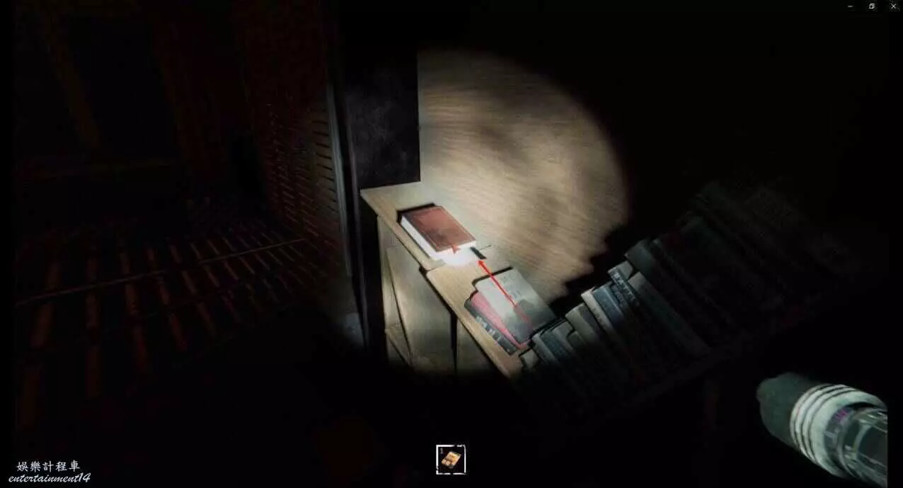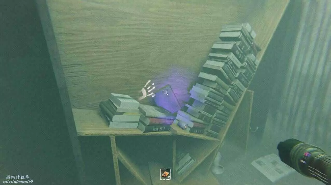 回頭去書架上找書→與書裡夾著的紙張進行互動→拿取道具