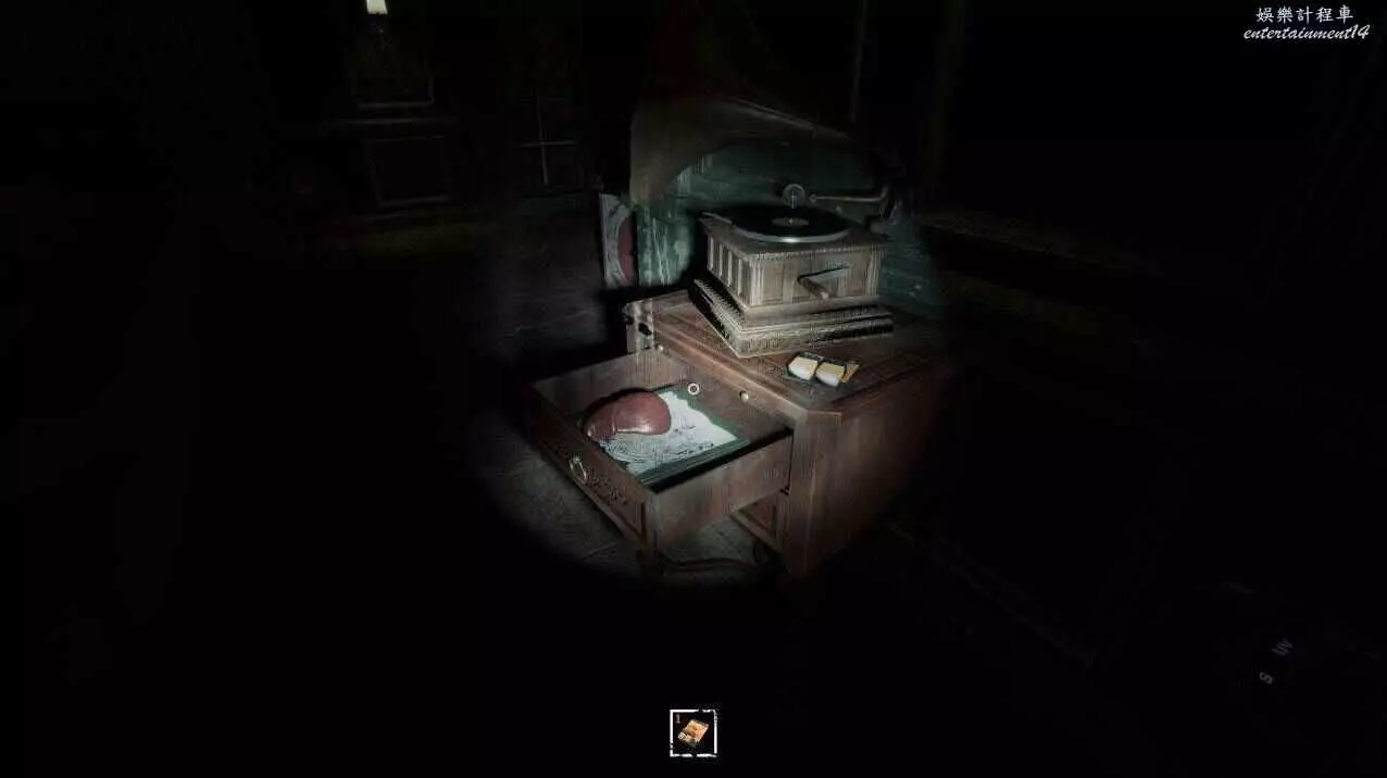 之後在留聲機上播放(使用)黑膠唱片,然後抽屜會自動打開,我們拿到肝臟
