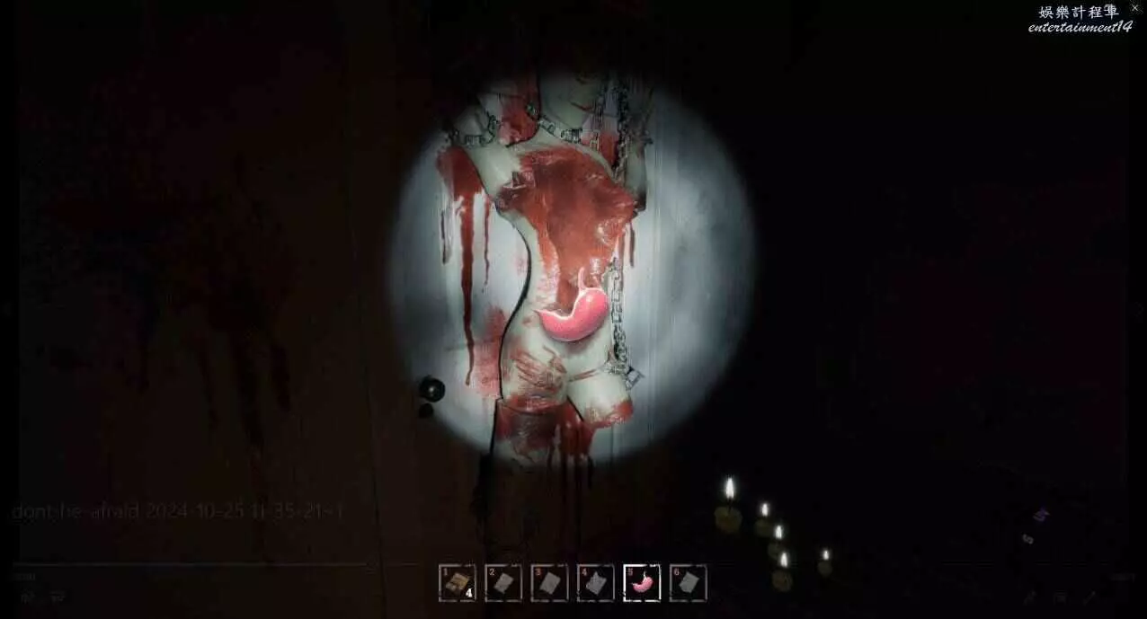 之前將所有器官(肝臟、肺臟、心臟、胃髒和腸子)插入門上的人體模型中→打開門→離開