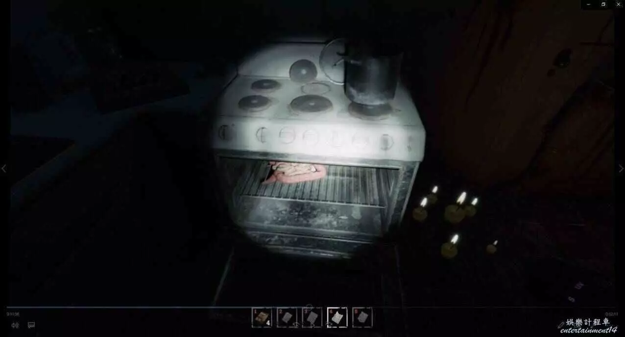 根據在紫外線下檢查房間獲取的烤箱旋鈕位置的線索,然後將烤箱旋鈕設置到正確位置→打開烤箱→拿到腸子
