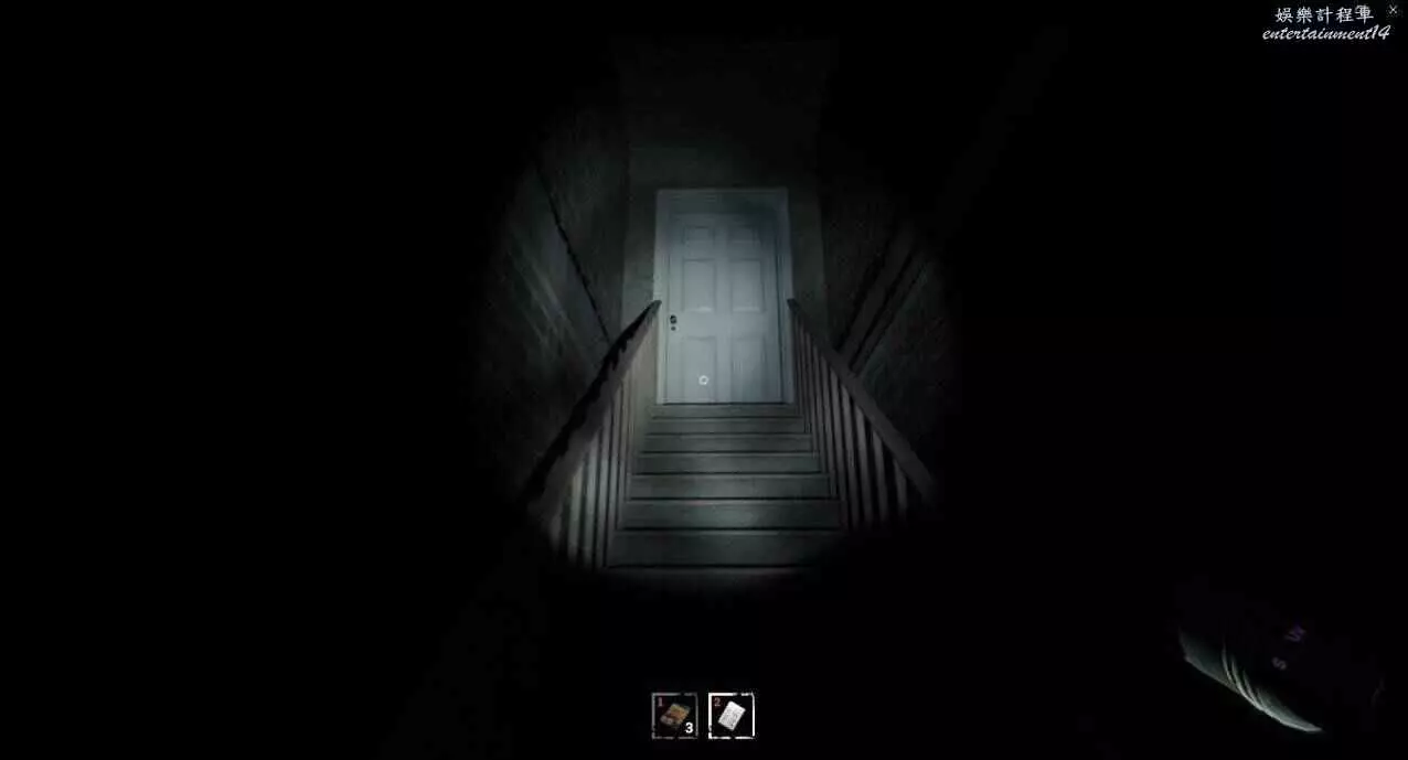 這時候我們已經找到全部的保險絲了(一共3個),來到浴室門口的牆邊找到閘箱,之後將3個保險絲放在閘箱裡,打開大門來到下一關