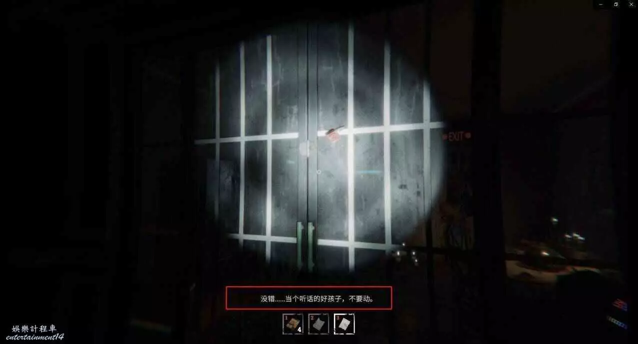 tips:這裡字幕提醒我們不要動,所以我們在打開廚房門時千萬不要動 否則會被身後的怪物殺死!!!
