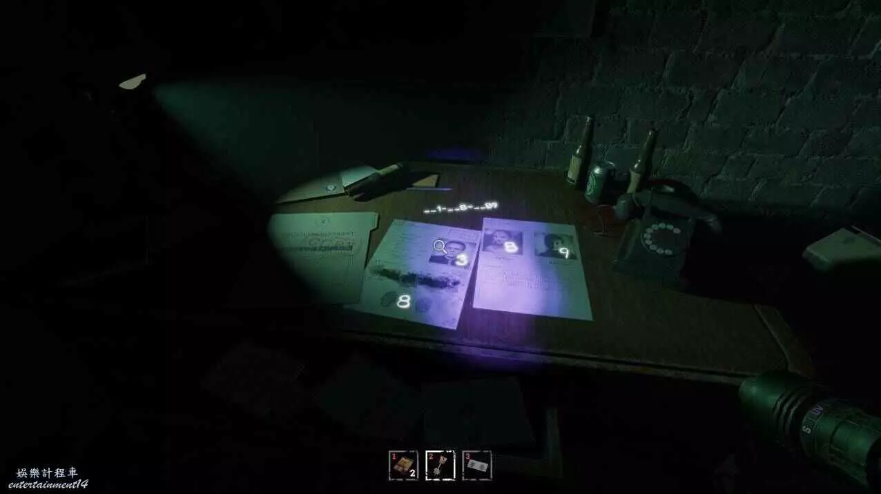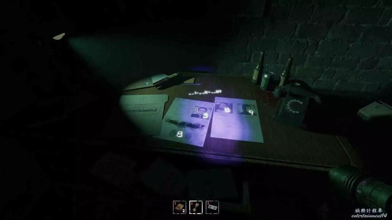 案件檔的每個元素上都有一個紫外線數字→完成的案件檔會給玩家一個電話號碼 971 – 478 – 3889(玩家可以根據之前的電話號碼推斷出案件檔的順序;971 必須在開頭,後面跟著四個數字)