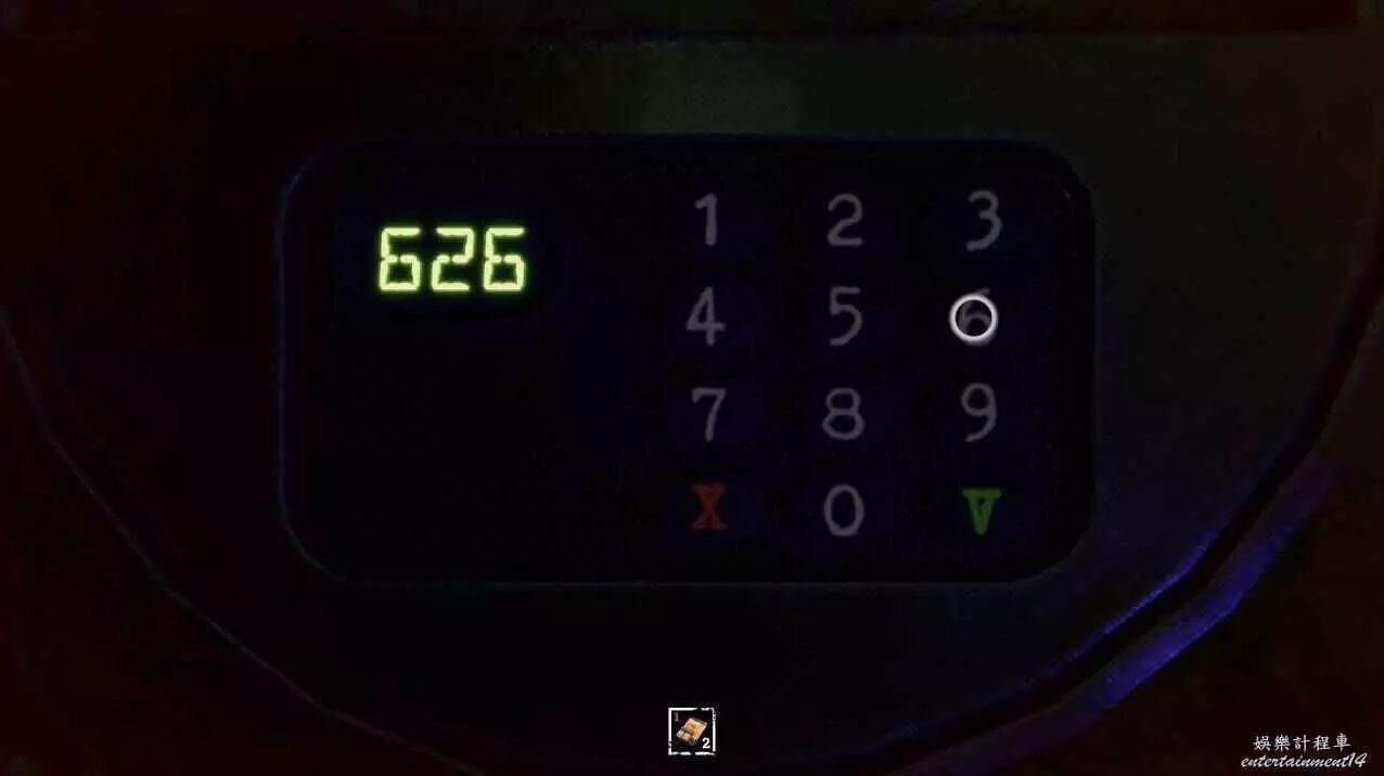 回頭打開衣櫃後,我們會來到保險箱前,提示需要我們輸入四位元密碼,根據之前我們從書中拿到的殘頁提示的字母L、i、e,再根據前面的密碼表可知,這三個字母分別對應的數位為12、9、5.我們輸入密碼後,按#號鍵,打開保險箱,拿到保險絲2