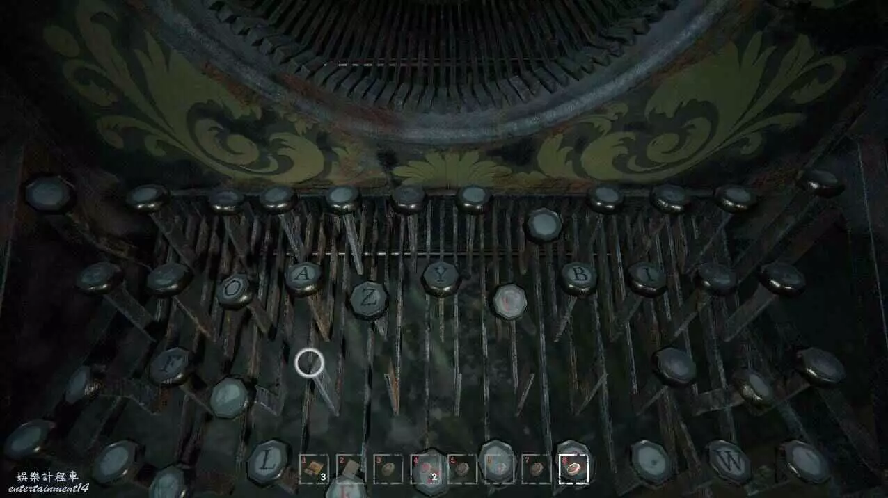 用投影儀謎題中的盒子鑰匙打開盒子 → 取出一共7個打字機鍵