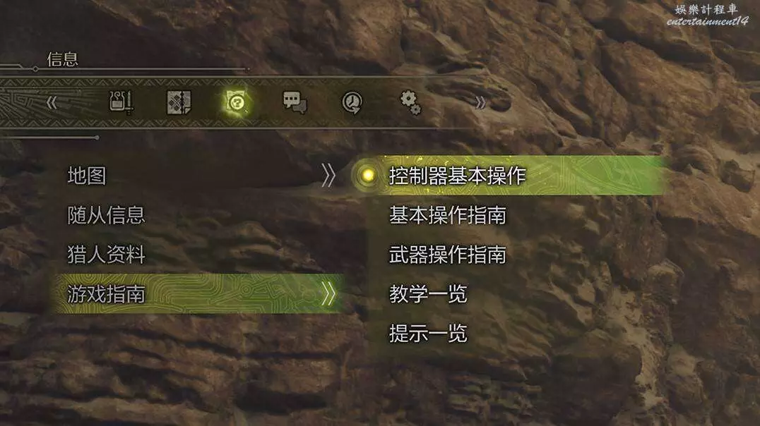 基本操作方法、各武器種類操作方法,曾經顯示過的教學和提示的一覽等資訊都已被集合在“遊戲指南”中。