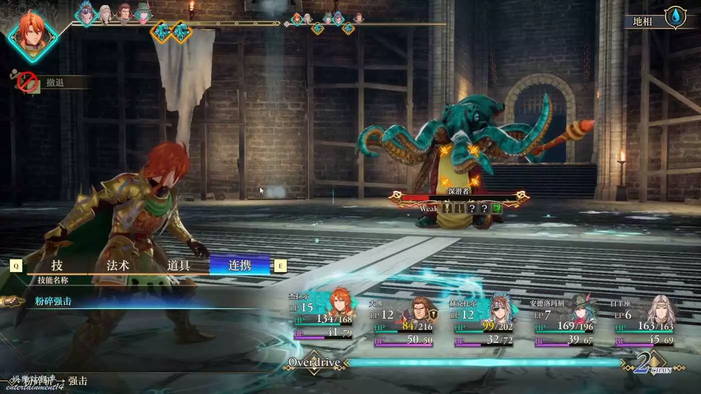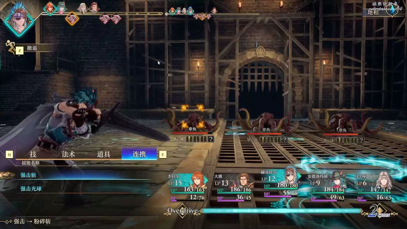 章魚BOSS戰沒什麼難度,暫時發現的弱點有這些,多用主角的連攜很好打,最好準備一個帶大劍的角色,連攜打的非常疼。