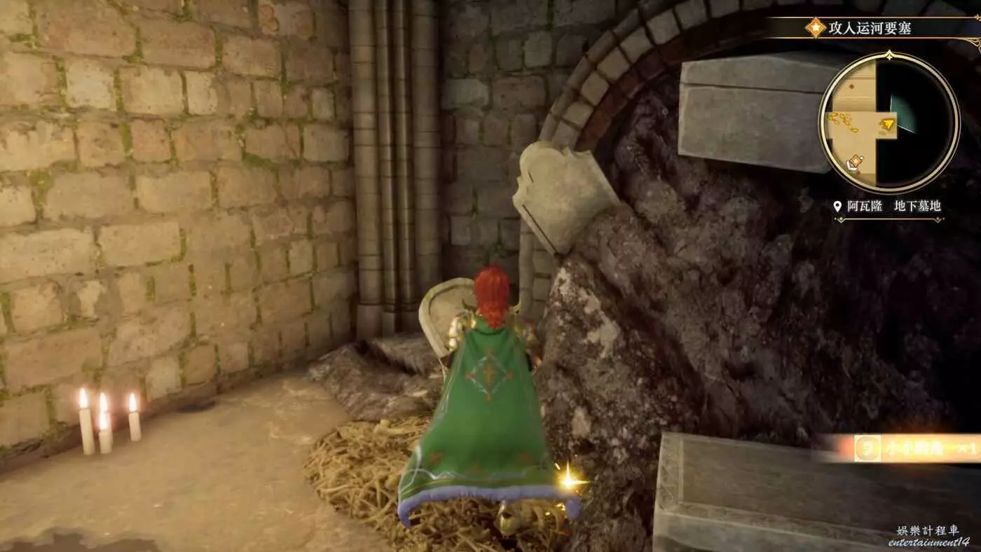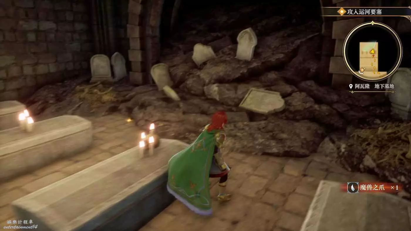 隨後潛入要塞,左邊就有一個道具可以拿,獲得魔獸之爪x1。右邊是小貓做的標記,非常明顯,進去以後全程都有標記,注意看跟著走即可。