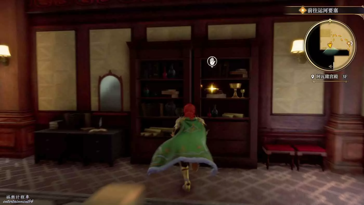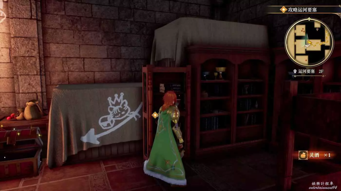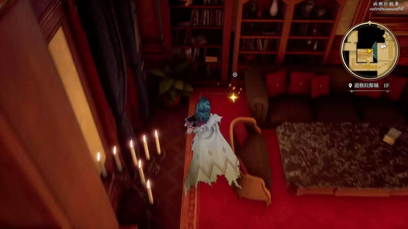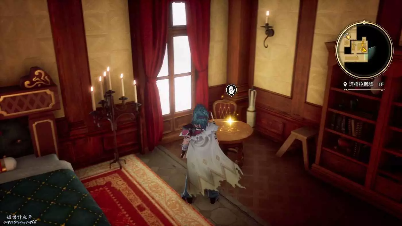 對完話以後回到城堡休息到晚上等小偷出來。在休息之前還可以在臥室附近逛逛,畢竟之前沒來過這邊,此圖這裡書架上能拿到道具野獸之爪x1。