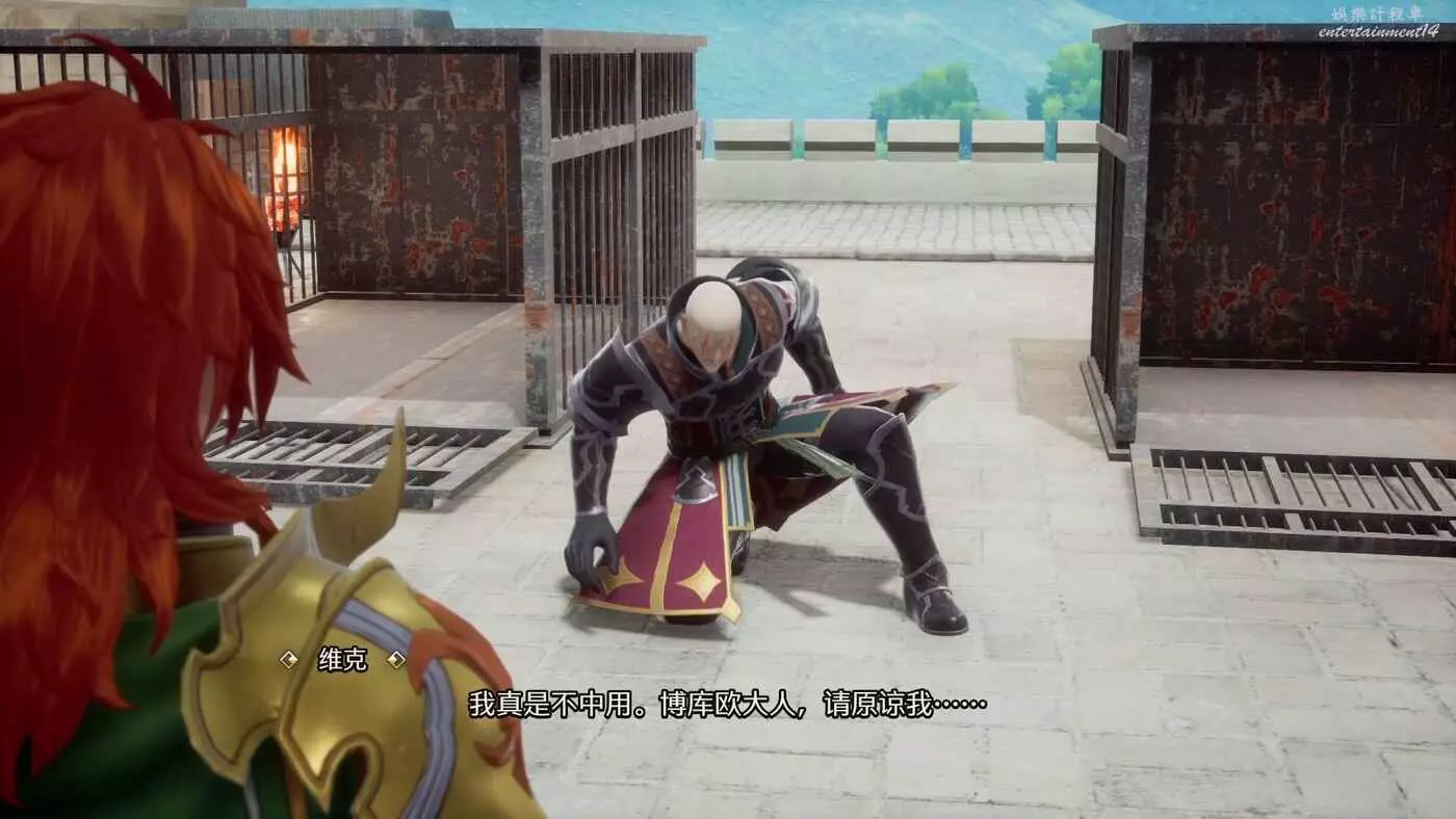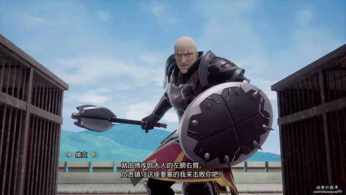 打開房門後,露臺上站著一個自稱是博庫歐的手下維克,他現在負責鎮守這個要塞,準備要擊敗我們。