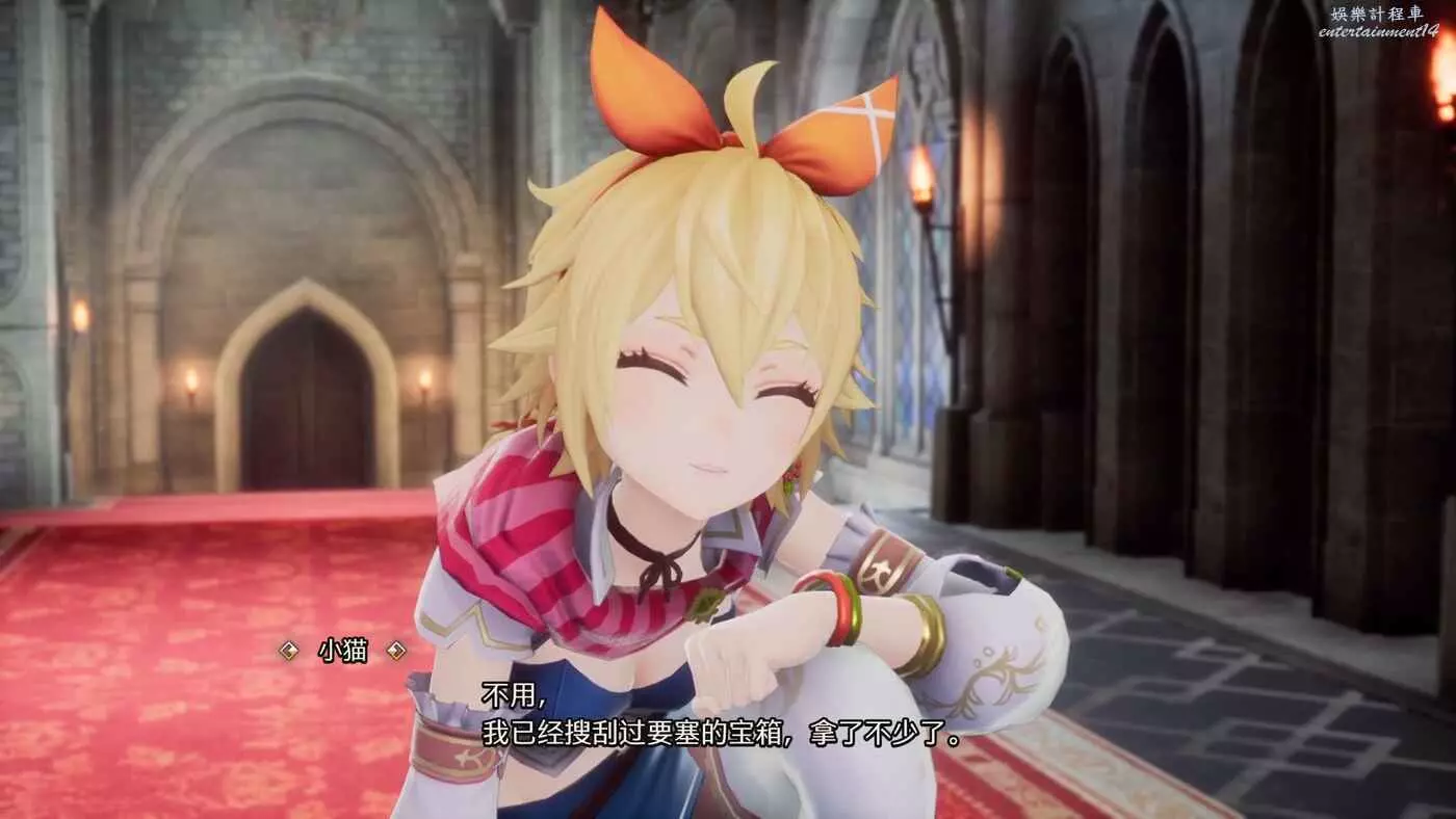 隨後視角回到城堡內,我們準備給小貓一些獎勵,不過小貓表示要塞的寶箱她已經搜刮的差不多了,已經不需要獎勵了。
