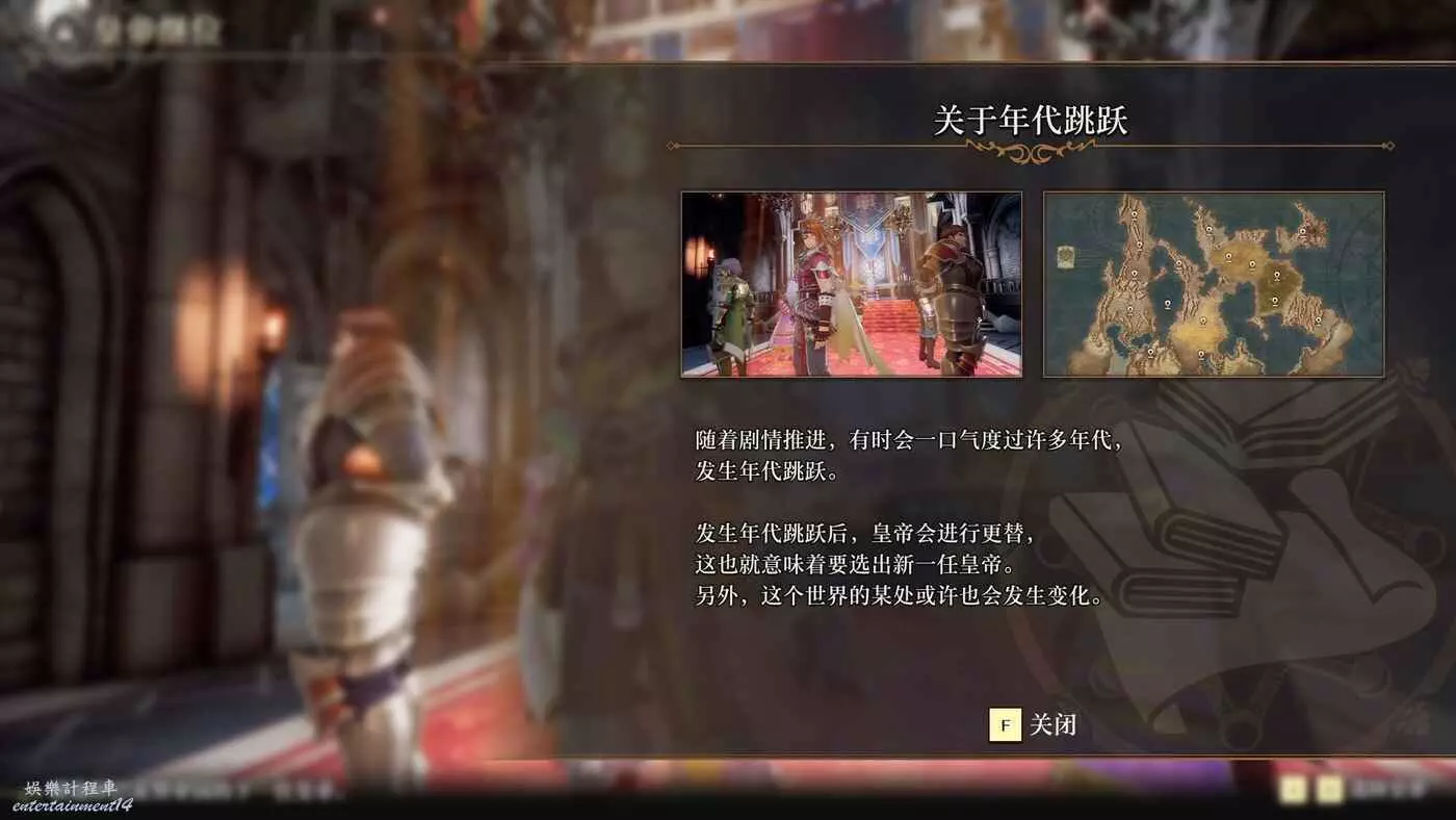 劇情突然快進到84年後,之前的主角傑拉爾突然就沒影了,系統也出了一個新提示。現在遊戲中會有年代跳躍,隨著劇情推進,有時會一口氣度過很多年代,我們要重新選擇一位新的皇帝,不過能力依舊會繼承。