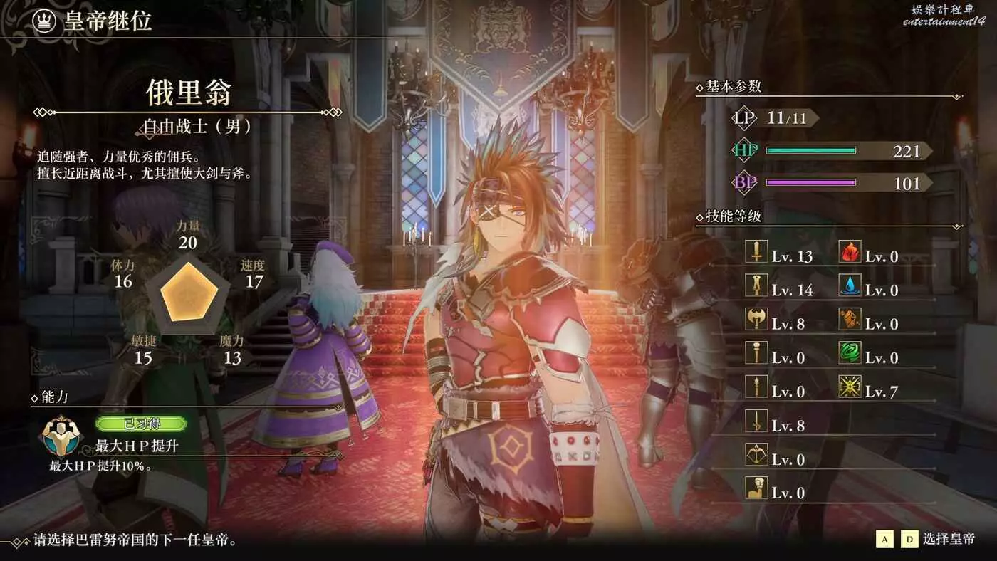我們還可以選擇之前的傭兵當皇帝,他的能力值也是繼承的。