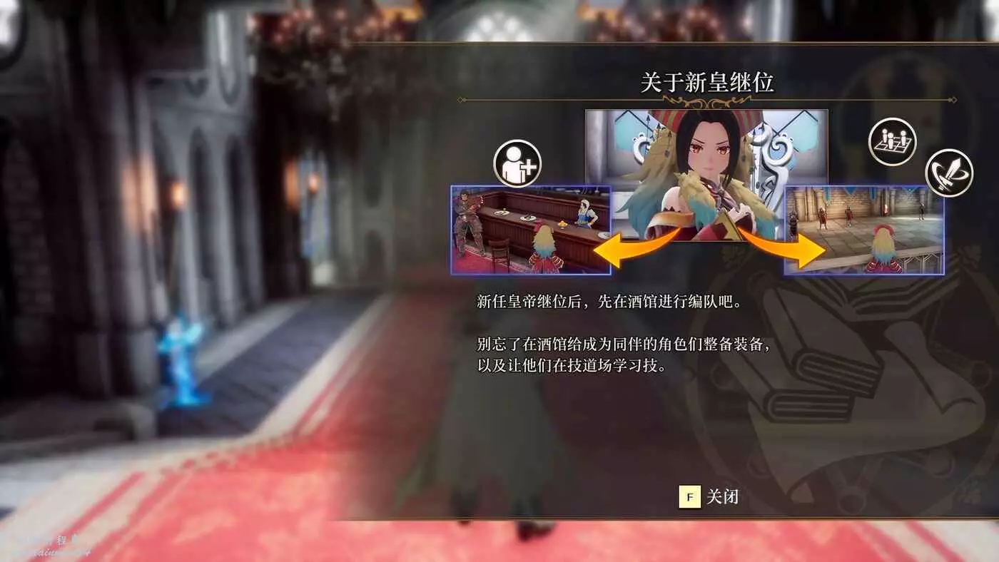 新皇位繼承後,我們也需要去酒館重新編隊,還是原來的地方,跟著黃色目標點走即可。