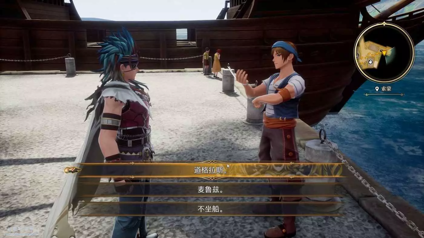 港口的木橋上坐著一個“老師”,對話後收集。