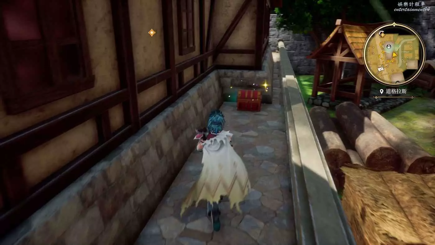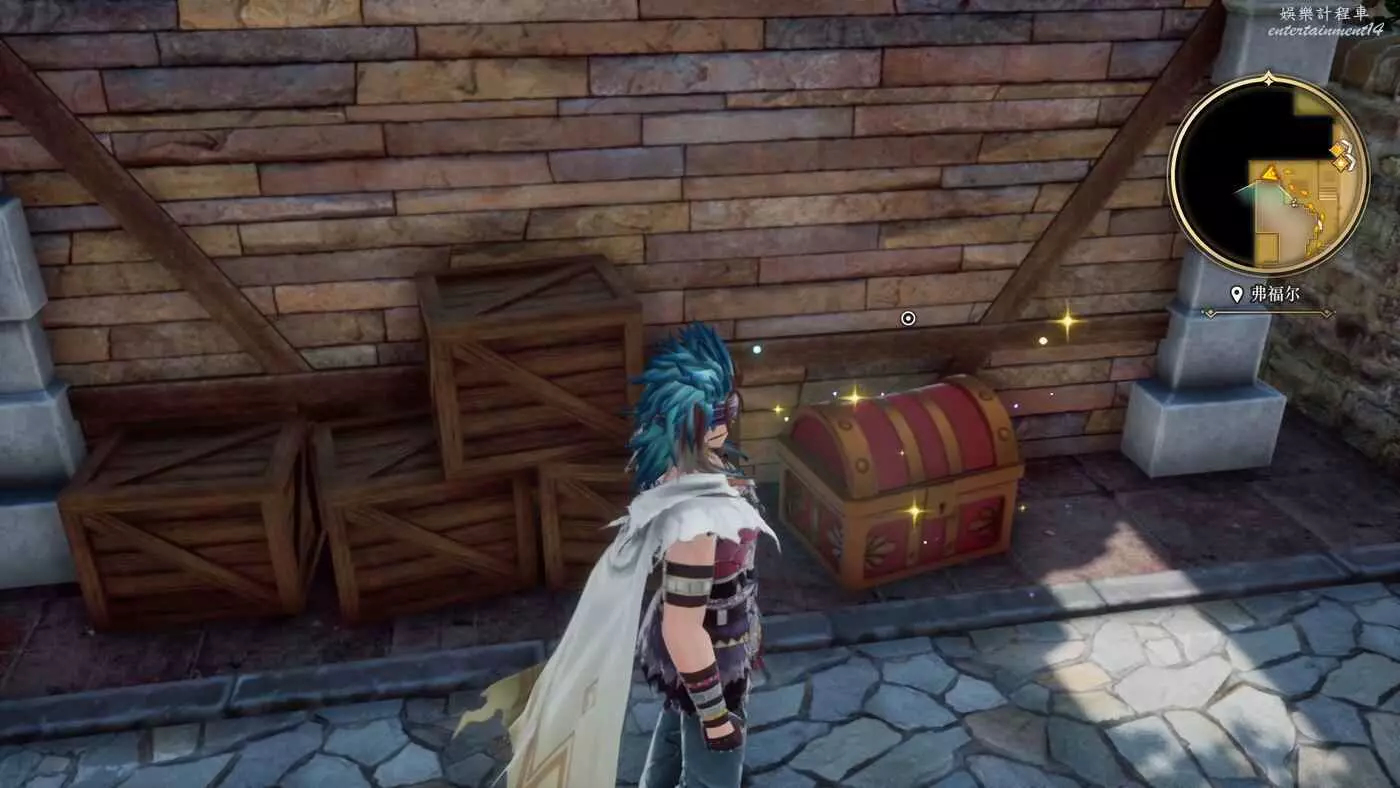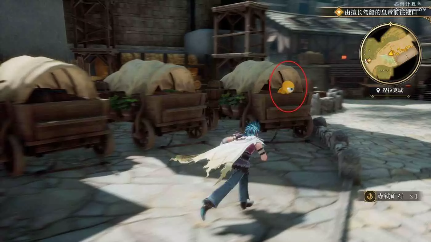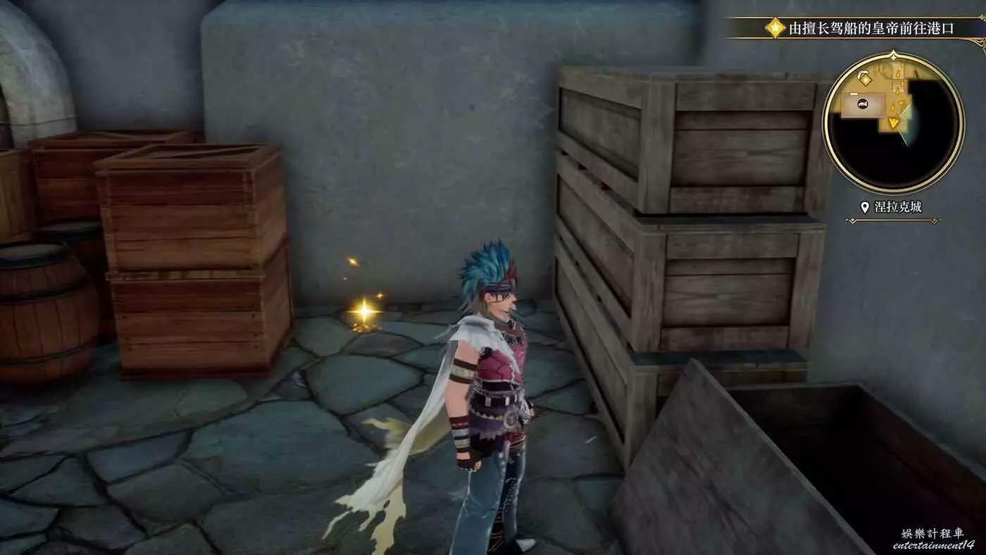 來到目的地之後,開始收集物品,港口進來左轉的角落就有一個寶箱,打開獲得9w朗克。