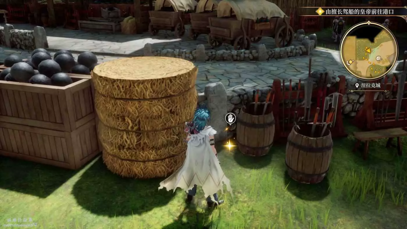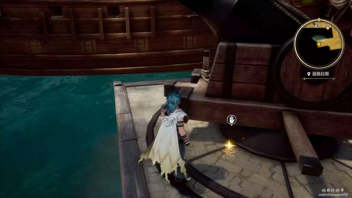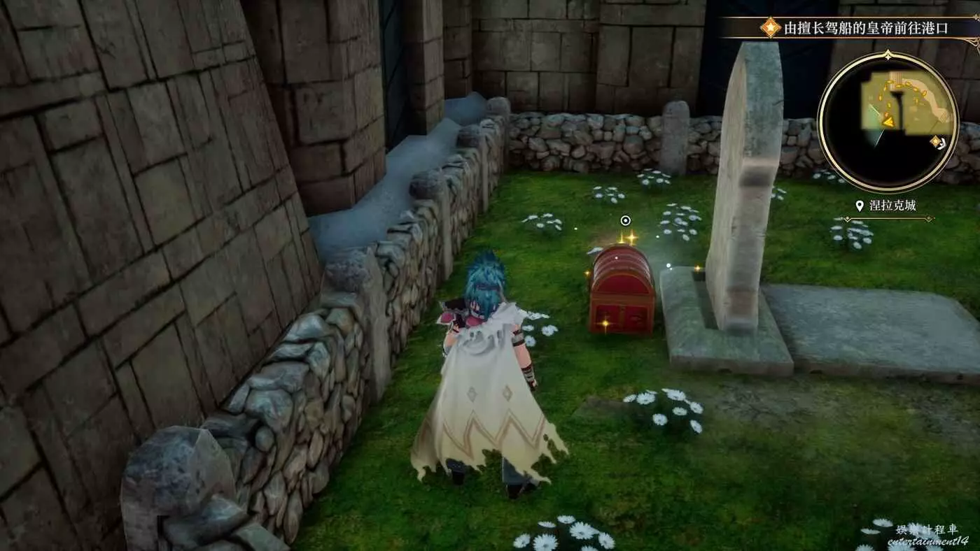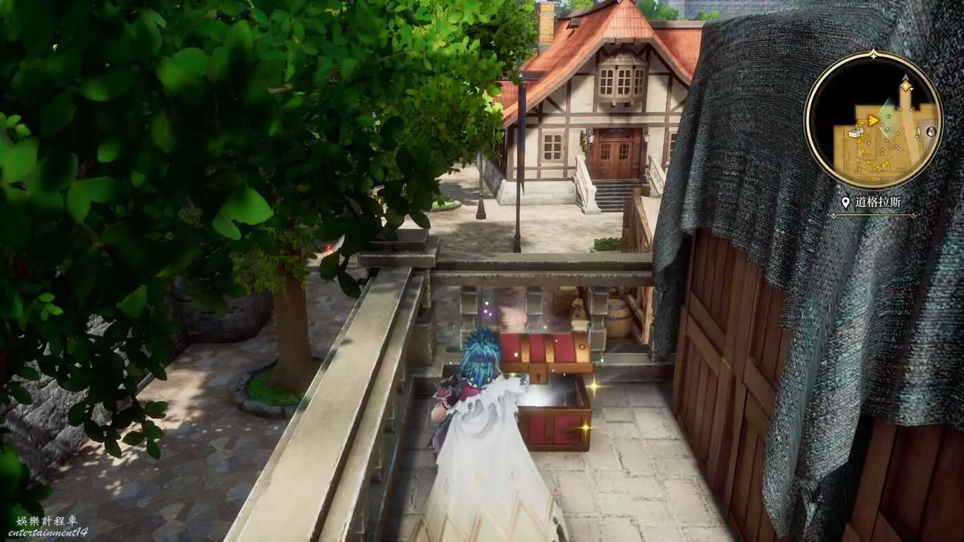 來到目的地之後,開始收集物品,港口進來左轉的角落就有一個寶箱,打開獲得9w朗克。
