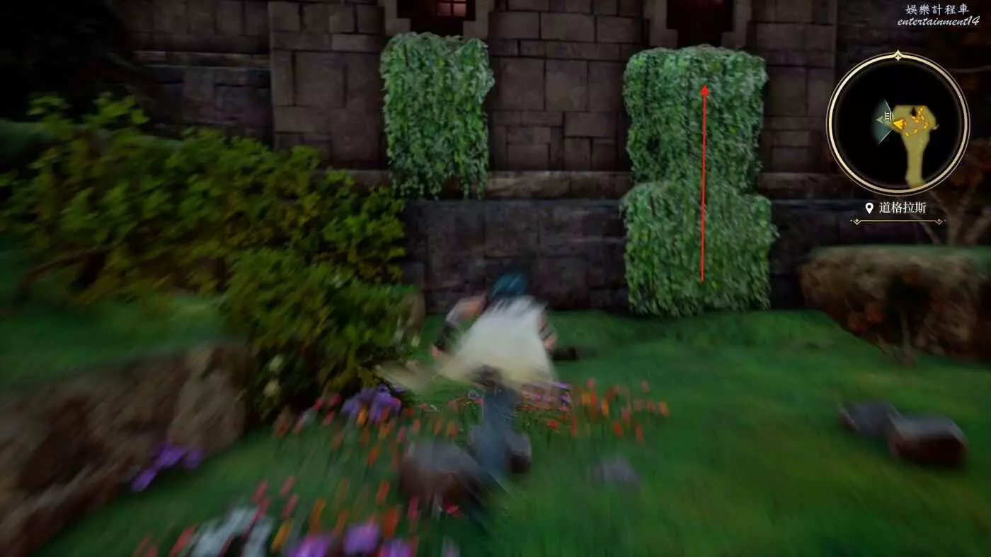 這樣城外的東西就收集的差不多了,我們現在可以順著左邊的蔓藤直接從進入城堡,當然也可以從大門進,不過這邊可以順路進。