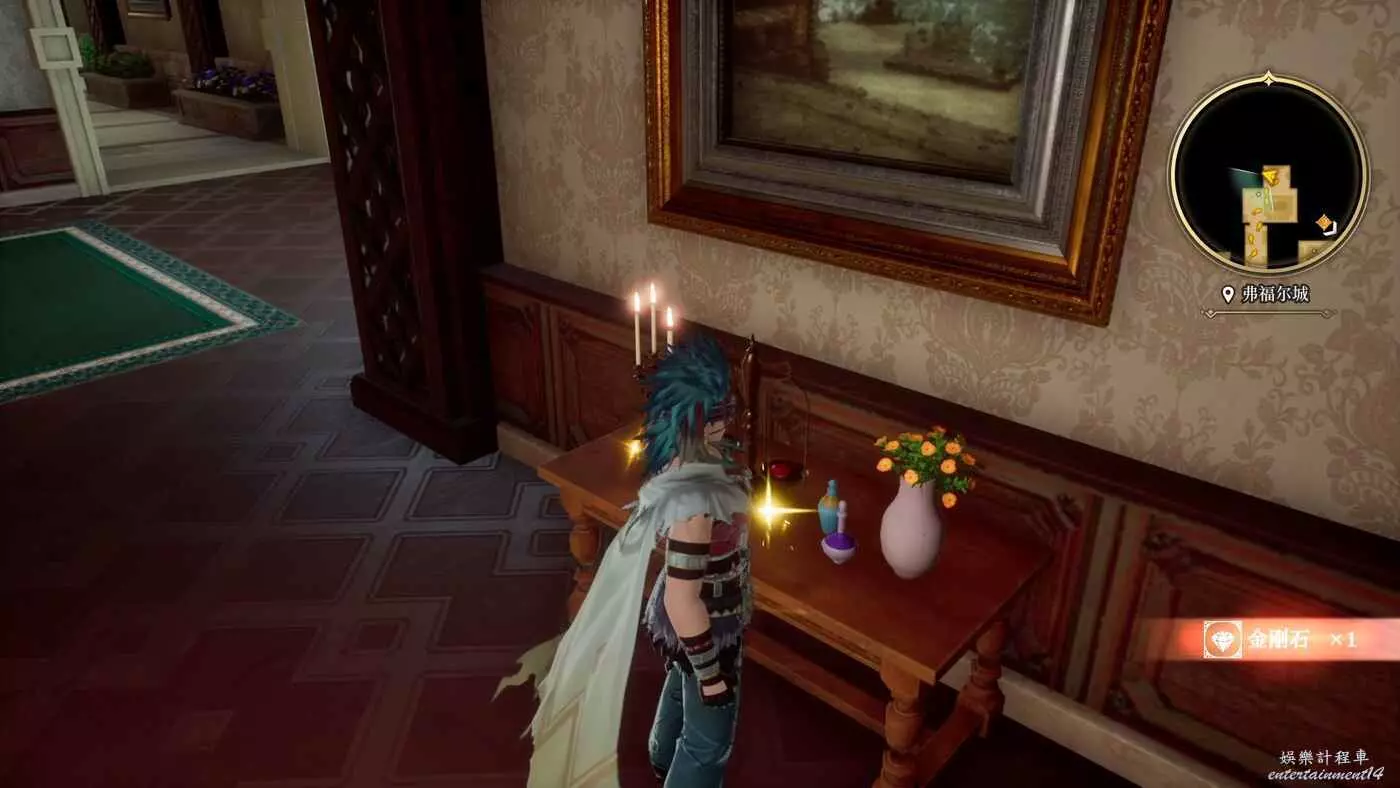 現在城堡其他地方還有一些地方沒搜,來到城堡中心的鋼琴處,後面可以獲得金剛石x1。