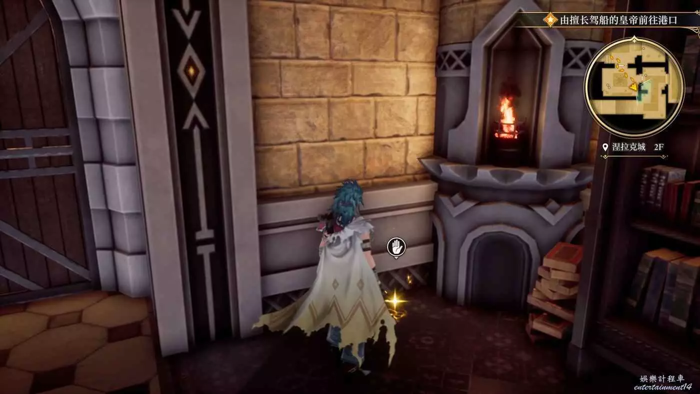 然而上去的地方我們在遊戲開始的時候就已經去過了,就是地圖上的樓梯處,我們需要進入裝備店,從壁爐處上去。