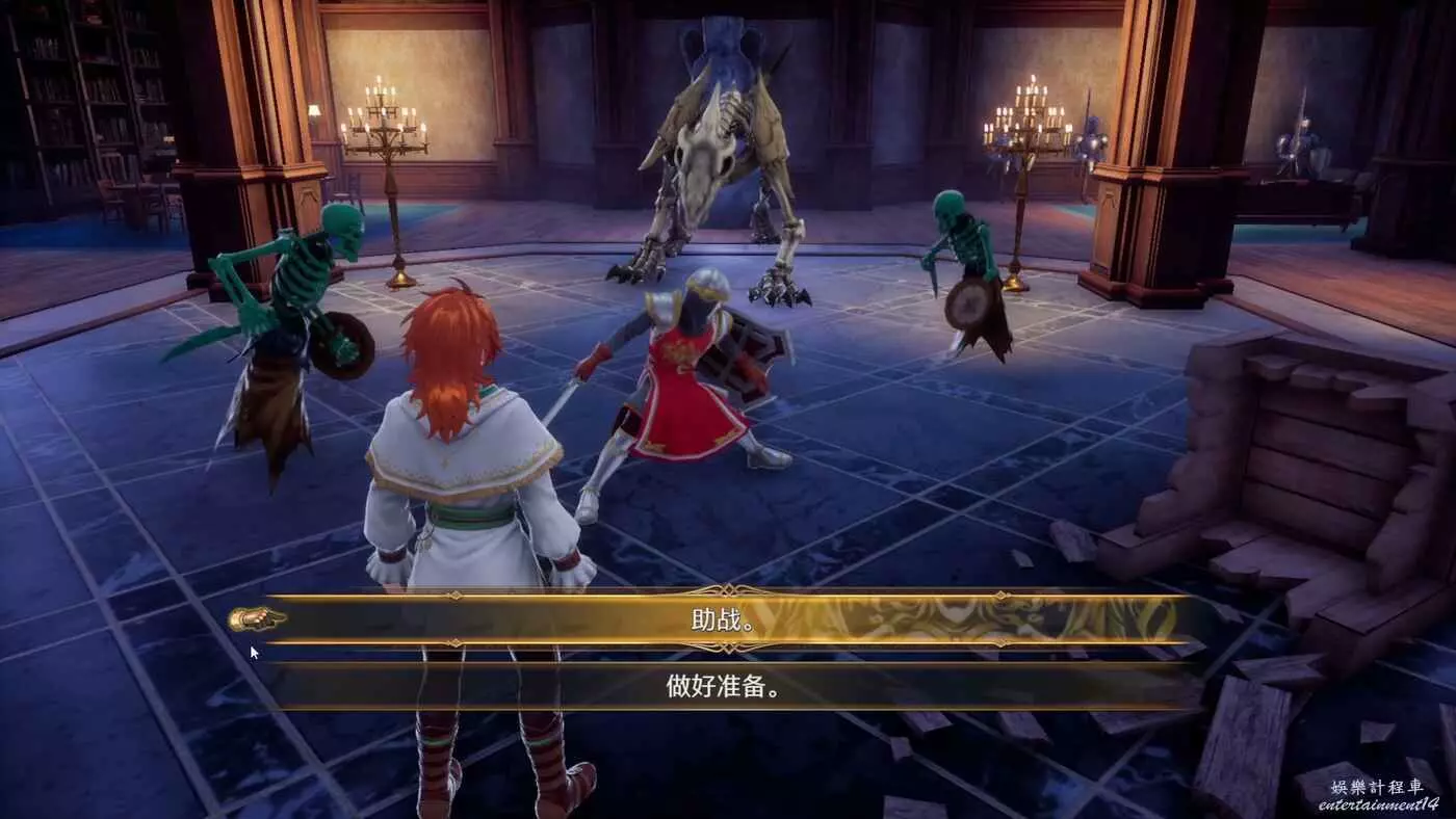 在門口存個檔以後進入城堡,城堡裡有一個長得很像BOSS的傢伙,我們可以選擇助戰加入戰鬥。
