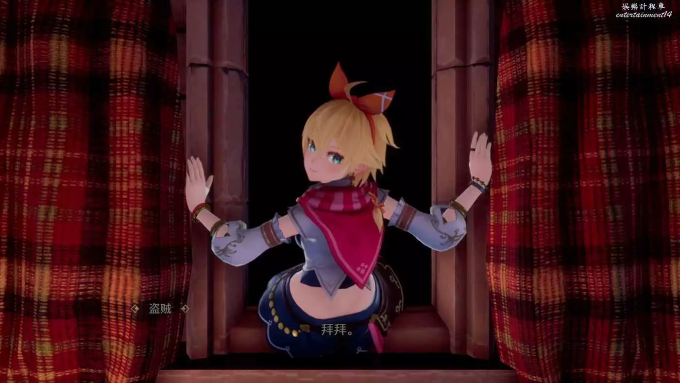 一個黃色頭髮的盜賊在偷東西,她轉身就跑走了。