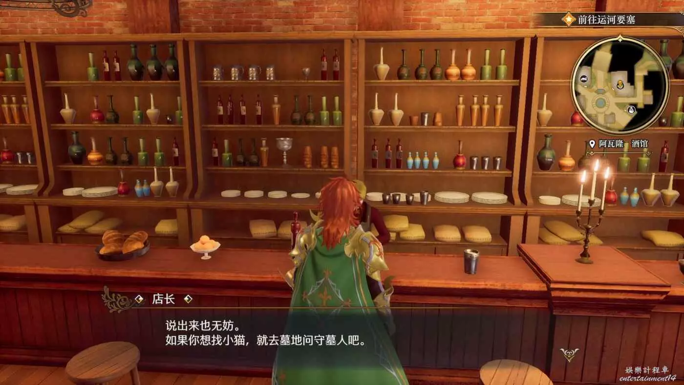 這是完成【收集有關小偷的情報】後的支線任務。我們直接跟著目標追蹤來到酒館,對話後直接選第一個選項,我們需要去墓地找小貓。
