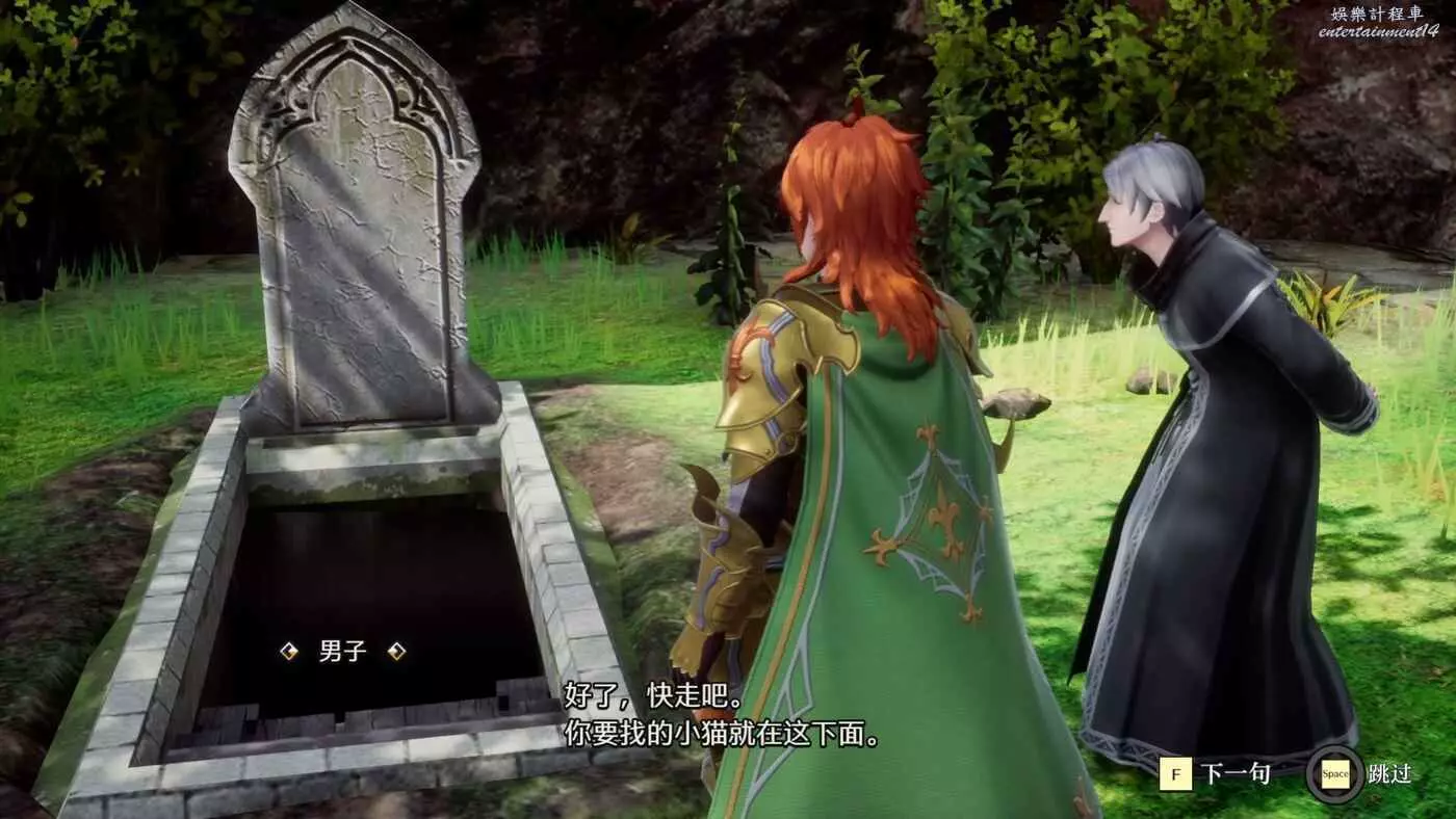 直接來到地圖後方的墓地,找到守墓人,守墓人告知我們小貓就在墓碑下面。