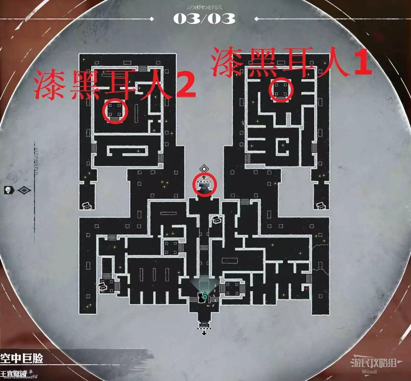 這張地圖同樣沒有機關與複雜路線,將倆耳人全部幹掉後,拿完所有藍點與寶箱去中間的房間觸發劇情即可。