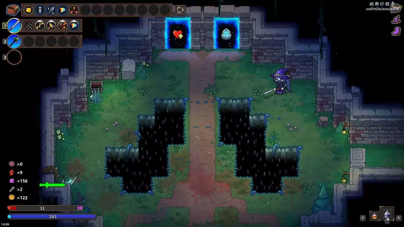 一方面,飛劍不佔用格子,享受所有強化的同時,會在對應法杖施法的時候追加一把飛劍射出。另一方面,飛劍的數量依賴於魔力上限的特性使得法杖的規劃被被大量簡化。於是,在具有此初始物品的時候,構築可以相對脫離法杖和法術的設計,反而具有了較大的通用性,即圍繞飛劍輸出進行構築。