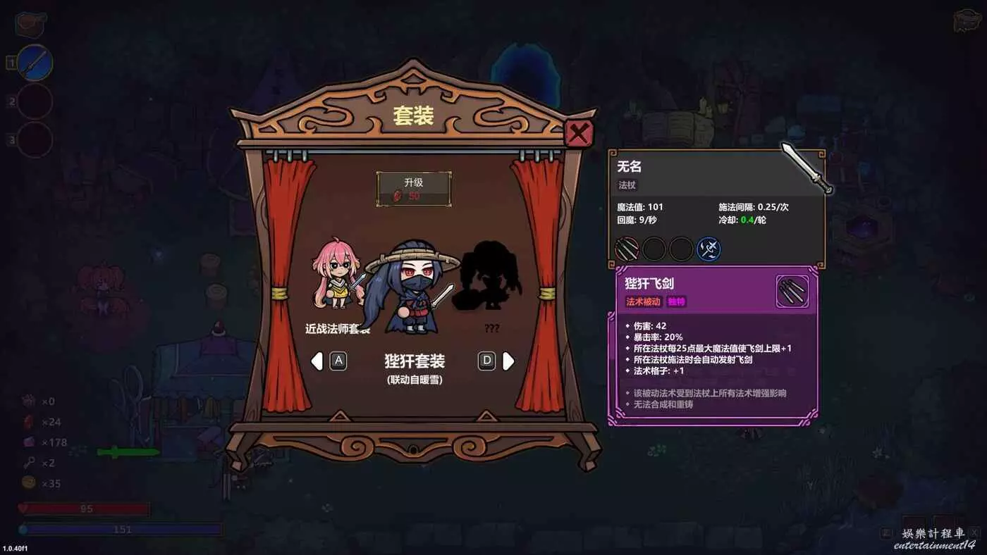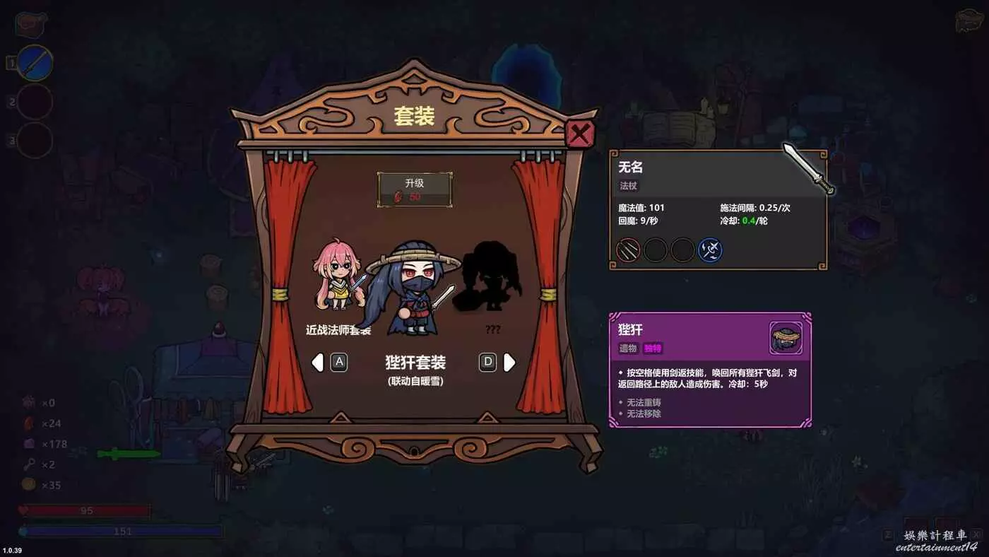其獨特道具狴犴的特性是按照一定時間收回已經射出的飛劍,而飛劍本身正是本構築的核心。